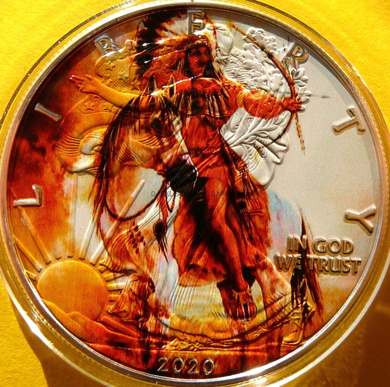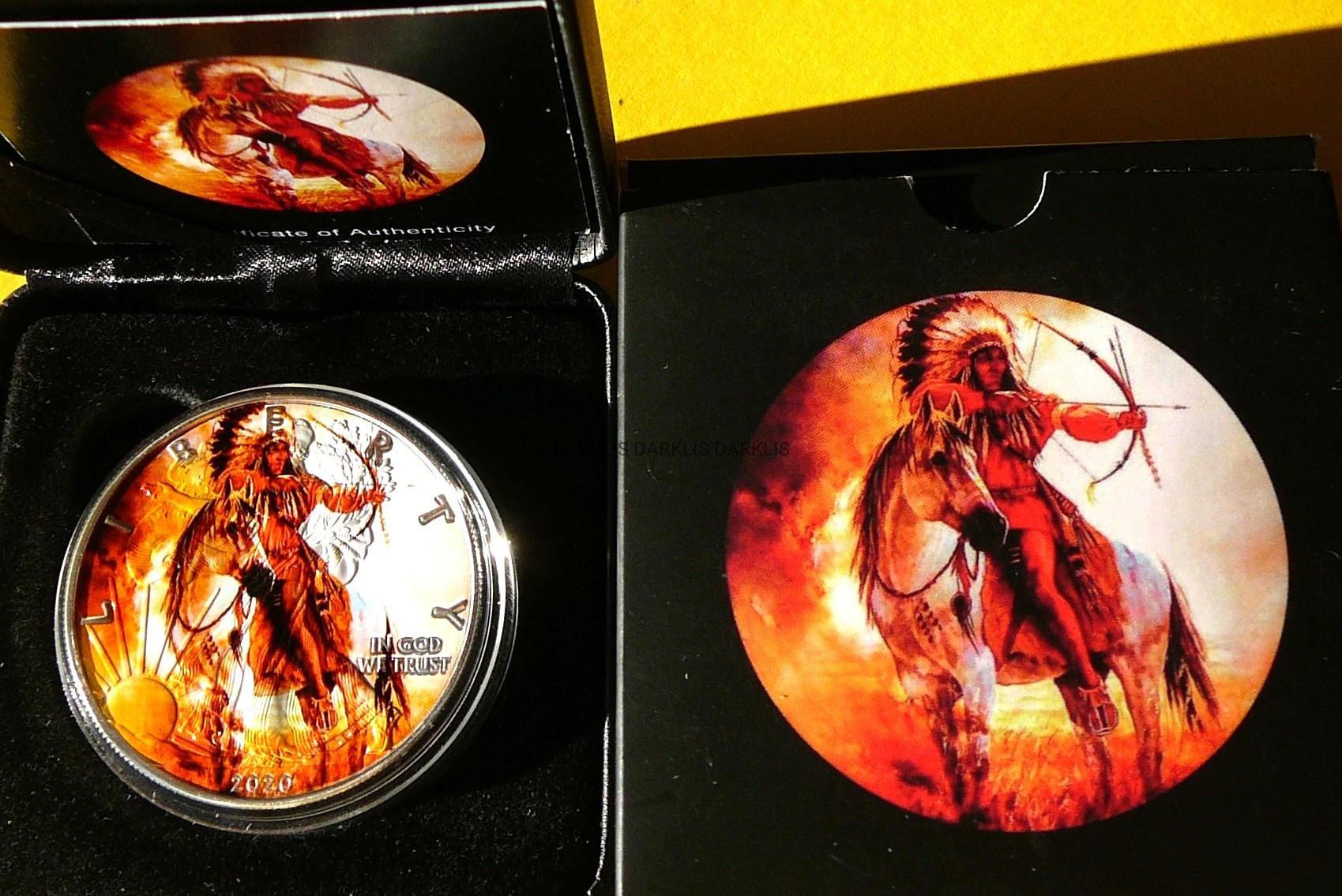NA AUKCJI WYSTAWIANA JEST PRZEPIĘKNA ORYGINALNA SREBRNA MONETA KOLEKCJONERSKA - DOLLAR - USA 2020 - SŁYNNI WODZOWIE - seria : RDZENNI AMERYKANIE - CZYSTE SREBRO PRÓBY 999 - UNCJA - KOLOR - STEMPEL MATT - RARYTAS - BARDZO RZADKA - NAKŁAD TYLKO 100 SZTUK !! + CERTYFIKAT AUTENTYCZNOŚCI + ETUI + KARTON - NA INNYCH AUKCJACH WYSTAWIAM MONETY Z TEJ SERII - ZAPRASZAM DO OGLĄDANIA