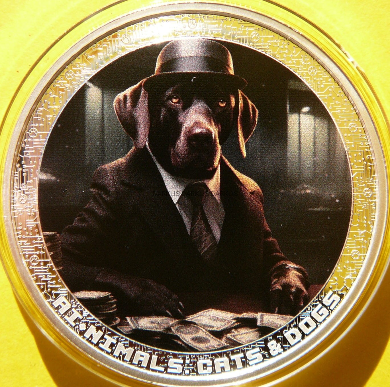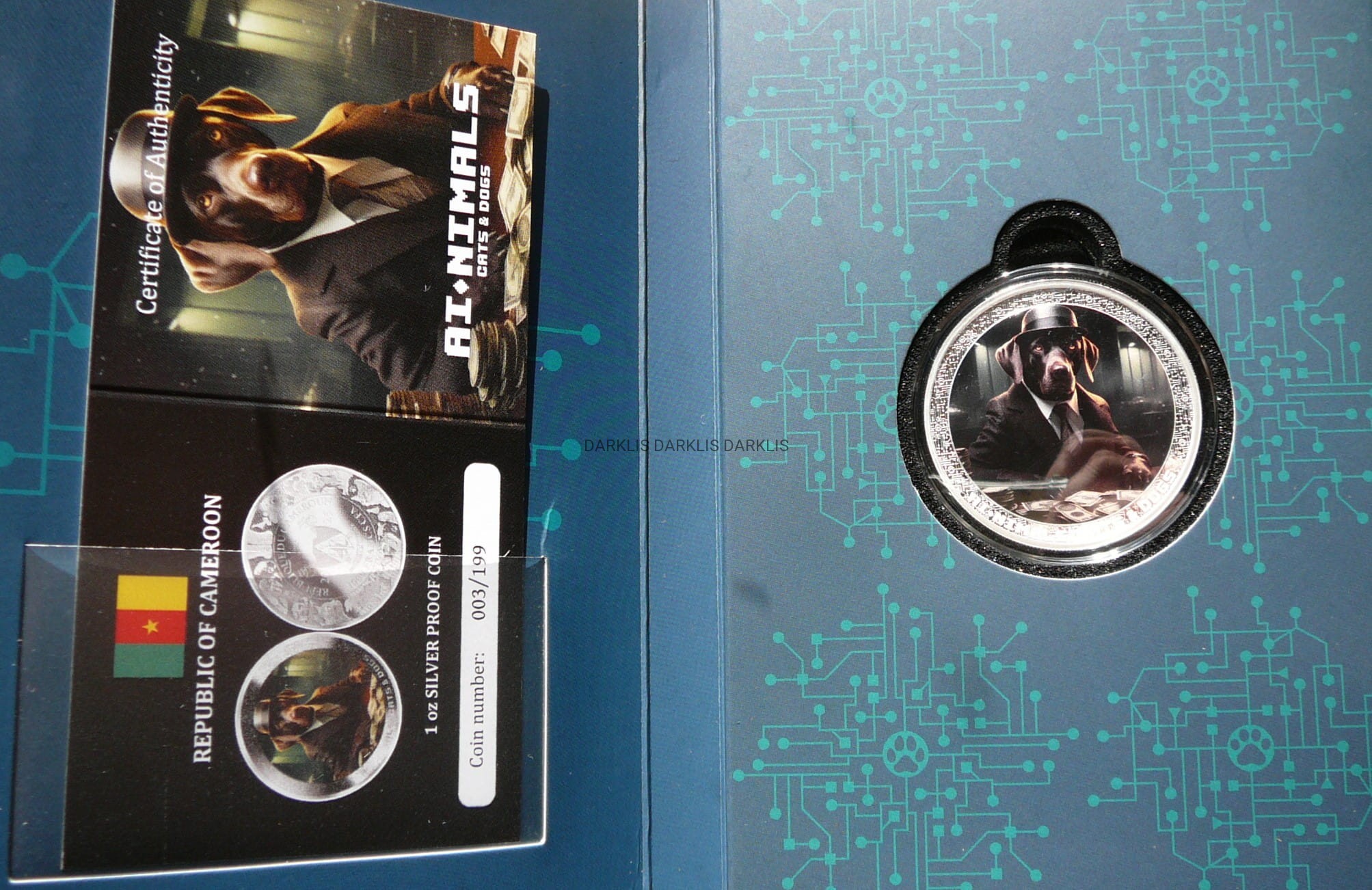 NA AUKCJI WYSTAWIANA JEST PRZEPIĘKNA ORYGINALNA I BARDZO RZADKA SREBRNA MONETA KOLEKCJONERSKA - 1000 FRANKÓW - KAMERUN 2025 - ZWIERZĘTA AI - PIES BANKIER MAFII - CZYSTE SREBRO PRÓBY 999 - UNCJA - KOLOR - - MENNICZA - RARYTAS - BARDZO RZADKA - NAKŁAD TYLKO 199 SZTUK !! + CERTYFIKAT AUTENTYCZNOŚCI + ETUI - NA INNYCH AUKCJACH WYSTAWIAM MONETY Z TEJ SERII - ZAPRASZAM DO OGLĄDANIA
