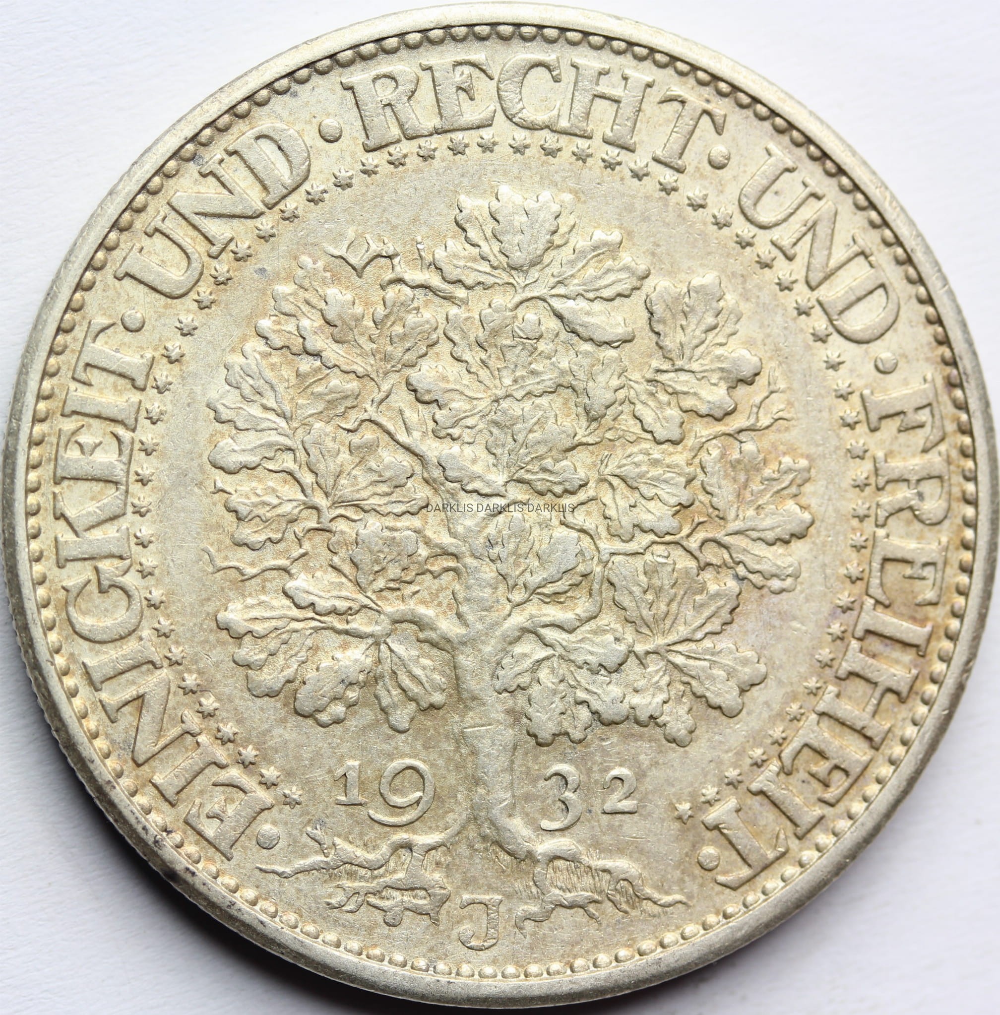 5 REICHSMAREK WEIMAR NIEMCY 1932 J DRZEWO DĄB Nr.5