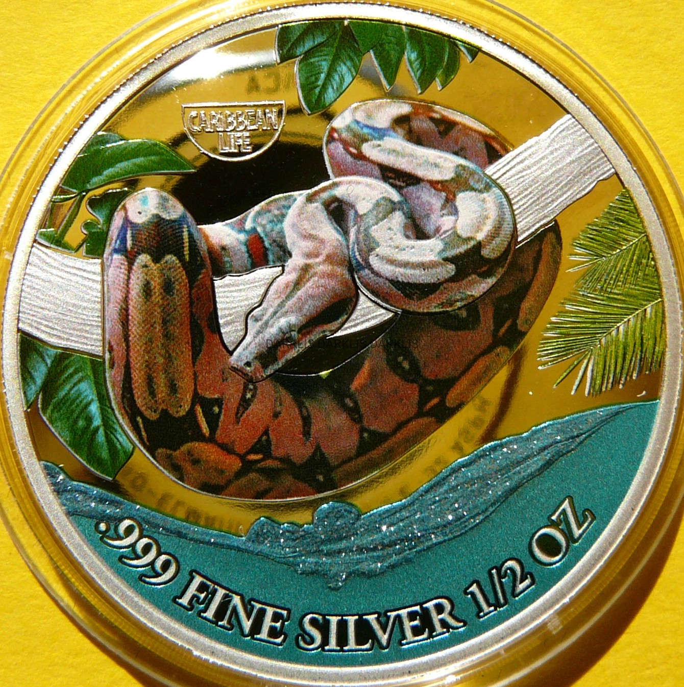 NA AUKCJI WYSTAWIONA JEST PRZEPIĘKNA JEDNA ORYGINALNA i RZADKA SREBRNA MONETA KOLEKCJONERSKA - 500 FRANKÓW - KAMERUN 2023 - PYTON - moneta z serii: TAJEMNICZE ŻYCIE NA KARAIBACH - CZYSTE SREBRO PRÓBY 999 - KOLOR - RARYTAS - RZADKA - NAKŁAD TYLKO 3.000 SZTUK !! - NA INNYCH AUKCJACH WYSTAWIAM MONETY Z TEJ SERII - ZAPRASZAM DO OGLĄDANIA