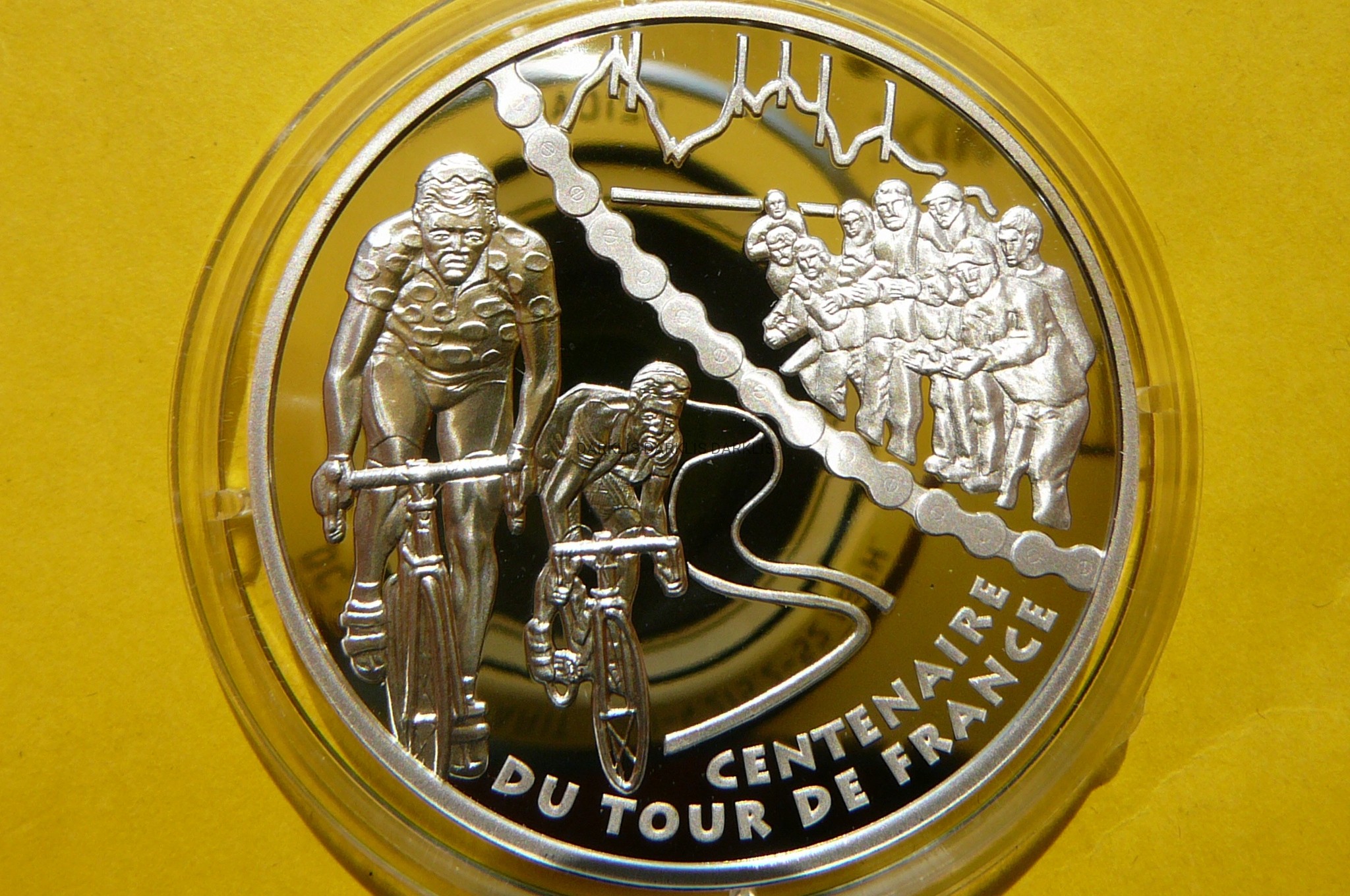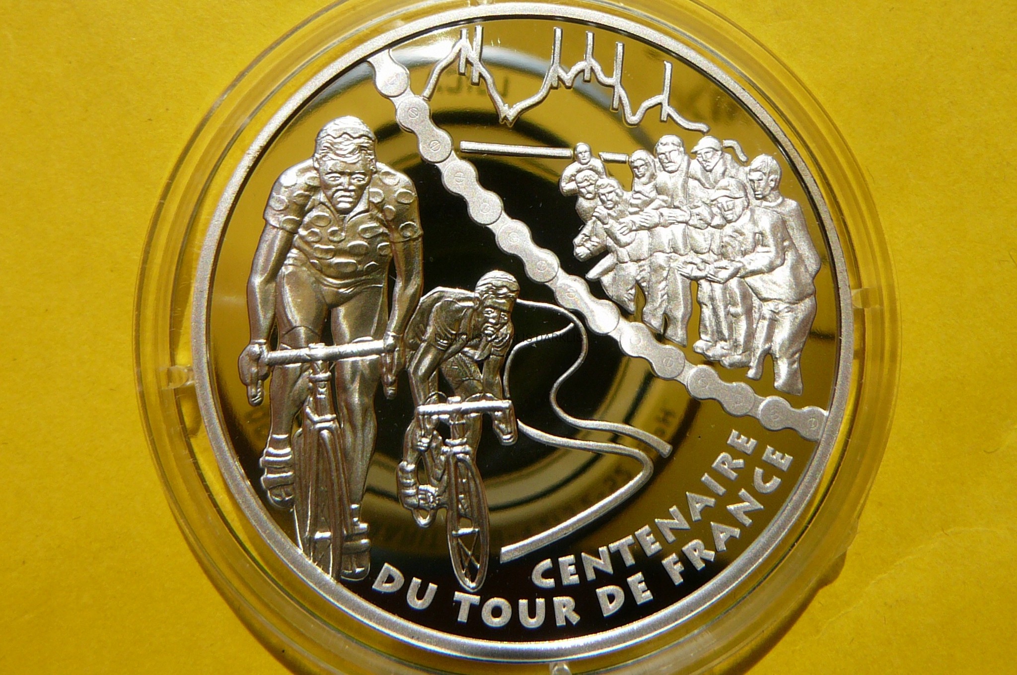 NA AUKCJI WYSTAWIANA JEST PRZEPIĘKNA ORYGINALNA SREBRNA MONETA KOLEKCJONERSKA - 1,5 EURO - FRANCJA 2003 - 100 ROCZNICA - TOUR DE FRANCE / WIELKA PĘTLA - ETAP GÓRSKI - UCIECZKA 2 KOLARZY - SREBRO 900 - PROOF - RZADKA MAŁY NAKŁAD TYLKO 16.317 SZTUK !! - RARYTAS + ETUI +CERTYFIKAT AUTENTYCZNOŚCI - NA INNYCH AUKCJACH MONETY Z TEJ SERII - ZAPRASZAM DO OGLĄDANIA