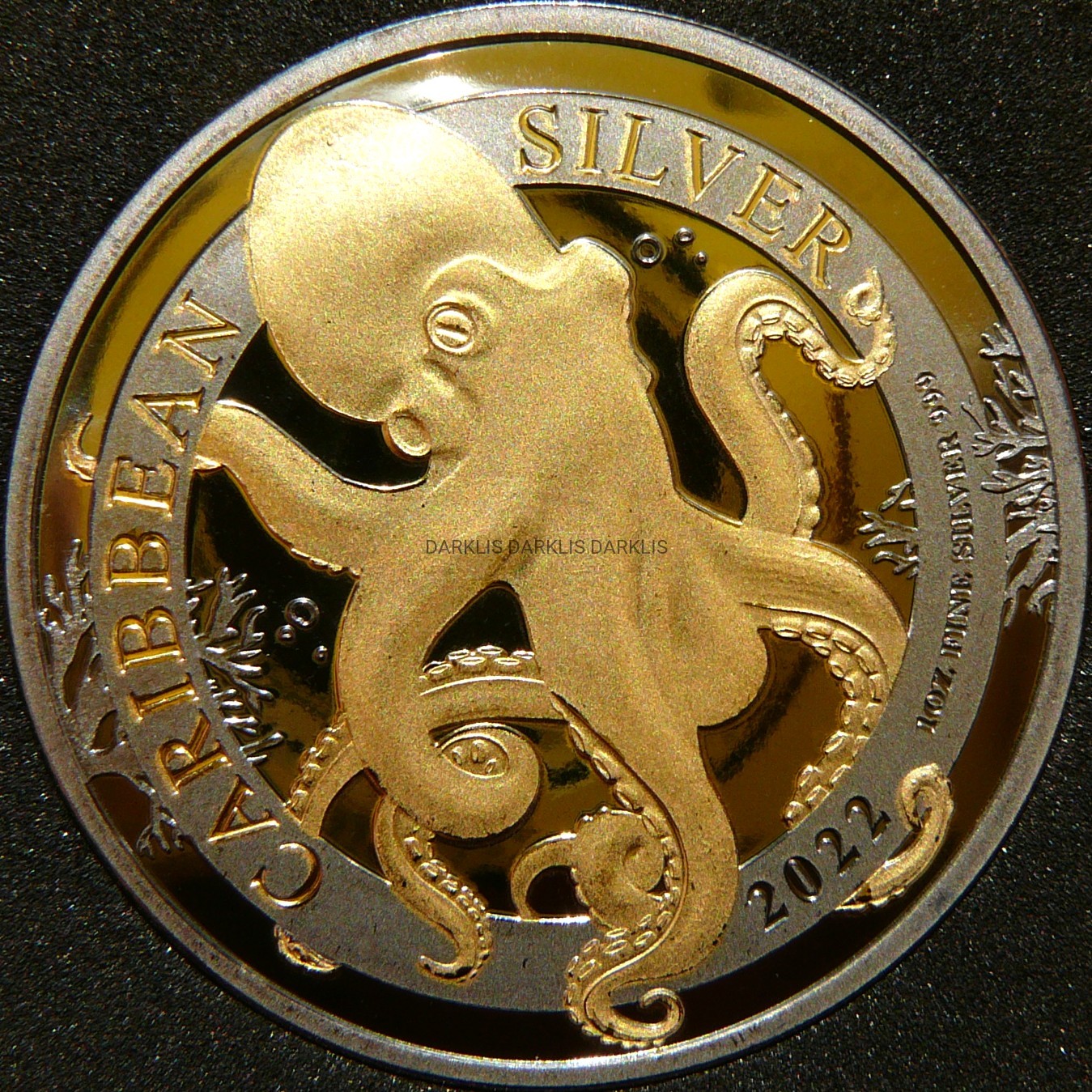 A AUKCJI WYSTAWIANA JEST PRZEPIĘKNA SREBRNA MONETA KOLEKCJONERSKA PLATEROWANA 24 KARATOWYM ZŁOTEM i RUTHENEM - DOLLAR - BARBADOS 2022 - OŚMIORNICA - BLACK ENIGMA - CZYSTE SREBRO/ZŁOTO PRÓBY 999 - UNCJA - BLACK RUTHENIUM - MENNICZA - RARYTAS - NA INNYCH AUKCJACH WYSTAWIAM MONETY Z TEJ SERII - ZAPRASZAM DO OGLĄDANIA