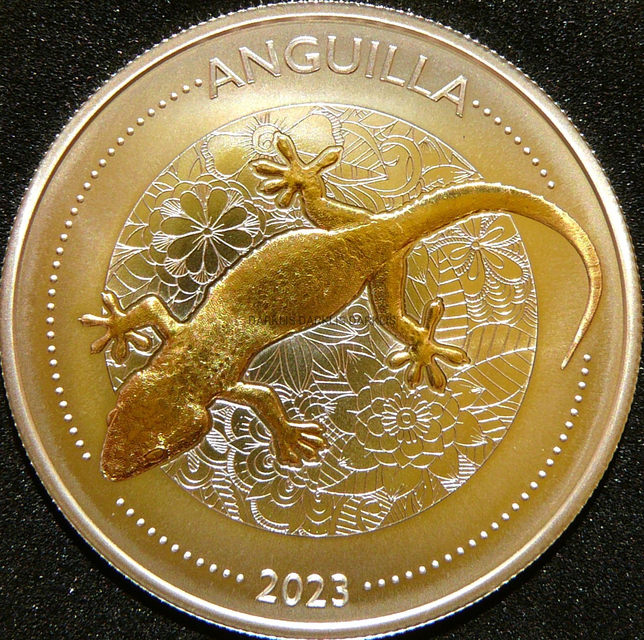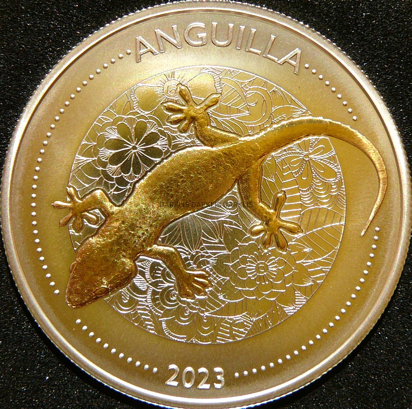 NA AUKCJI WYSTAWIONA JEST PRZEPIĘKNA ORYGINALNA i RZADKA SREBRNA MONETA KOLEKCJONERSKA PLATEROWANA 24 KARATOWYM ZŁOTEM - DOLLAR - KARAIBY WSCHODNIE 2023 - JASZCZURKA ANGUILLA - CZYSTE SREBRO/ZŁOTO PRÓBY 999 - UNCJA - STEMPEL LUSTRZANY - MENNICZA - POLECAM - RARYTAS - NA INNYCH AUKCJACH WYSTAWIAM MONETY Z TEJ SERII - ZAPRASZAM DO OGLĄDANIA