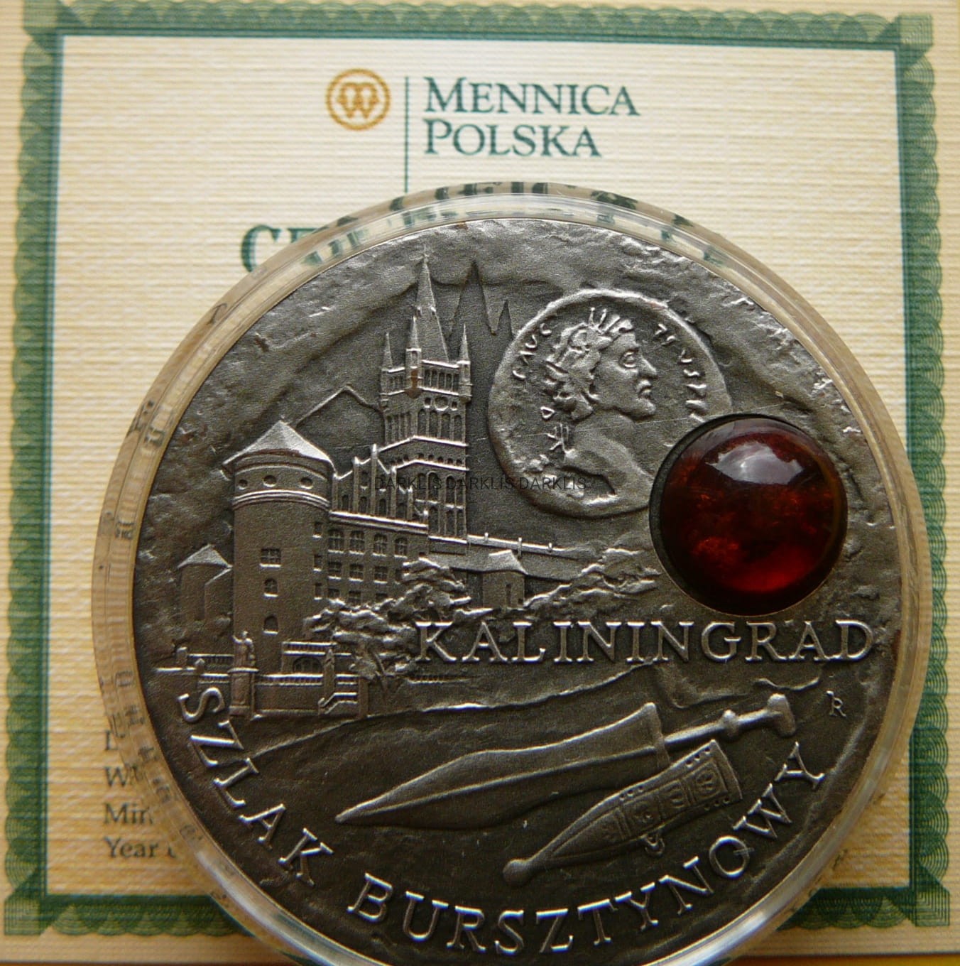 NA AUKCJI WYSTAWIANA JEST PRZEPIĘKNA ORYGINALNA RZADKA SREBRNA MONETA KOLEKCJONERSKA - DOLLAR - NIUE 2008 - KALININGRAD - seria : SZLAK BURSZTYNOWY - SREBRO PRÓBY 925 - STEMPEL OKSYDOWANY z BURSZTYNEM - MENNICZA - RARYTAS - RZADKA - NAKŁAD TYLKO 10.000 SZTUK !! - NA INNYCH AUKCJACH WYSTAWIAM MONETY Z TEJ SERII - ZAPRASZAM DO OBEJRZENIA