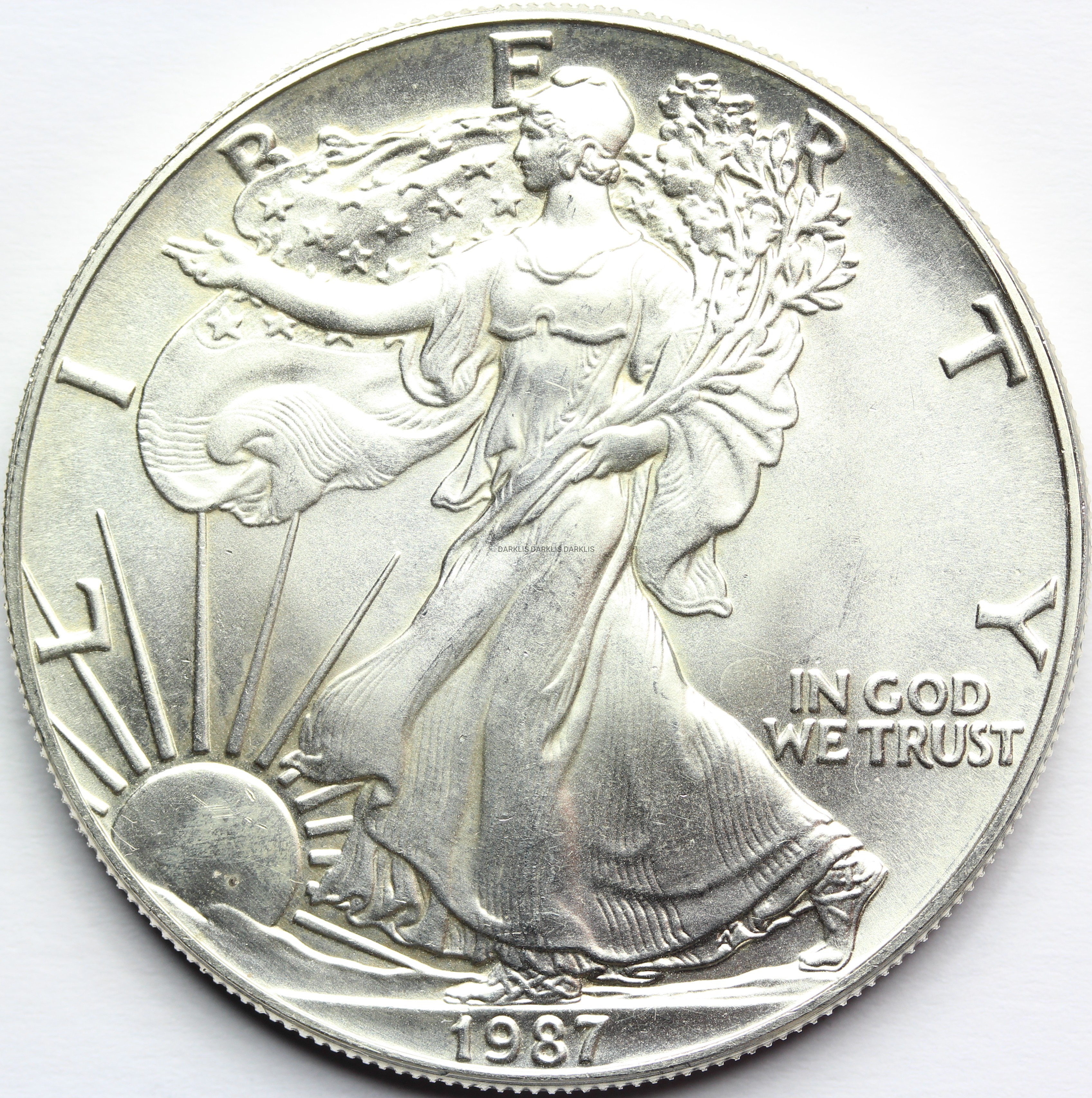 NA AUKCJI WYSTAWIANA JEST PRZEPIĘKNA ORYGINALNA SREBRNA MONETA INWESTYCYJNA - DOLLAR - USA 1987 - EAGLE ORZEŁ - LIBERTY BOGINI WOLNOŚCI - CZYSTE SREBRO PRÓBY 999 - UNCJA - RARYTAS - NA INNYCH AUKCJACH WYSTAWIAM MONETY Z TEJ SERII - ZAPRASZAM DO OGLĄDANIA