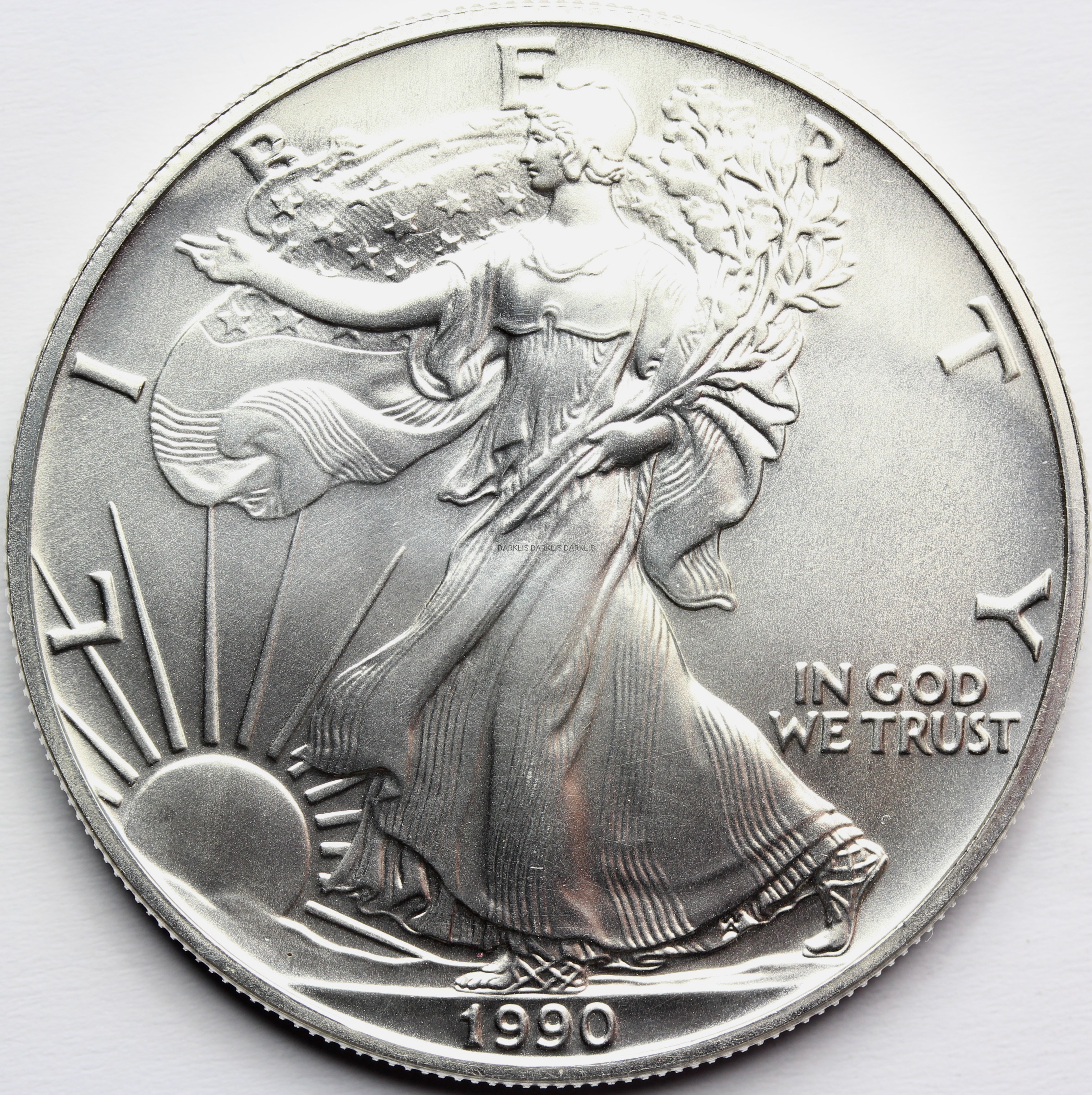 NA AUKCJI WYSTAWIANA JEST PRZEPIĘKNA ORYGINALNA SREBRNA MONETA INWESTYCYJNA - DOLLAR - USA 1990 - EAGLE ORZEŁ - LIBERTY BOGINI WOLNOŚCI - CZYSTE SREBRO PRÓBY 999 - UNCJA - RARYTAS - NA INNYCH AUKCJACH WYSTAWIAM MONETY Z TEJ SERII - ZAPRASZAM DO OGLĄDANIA