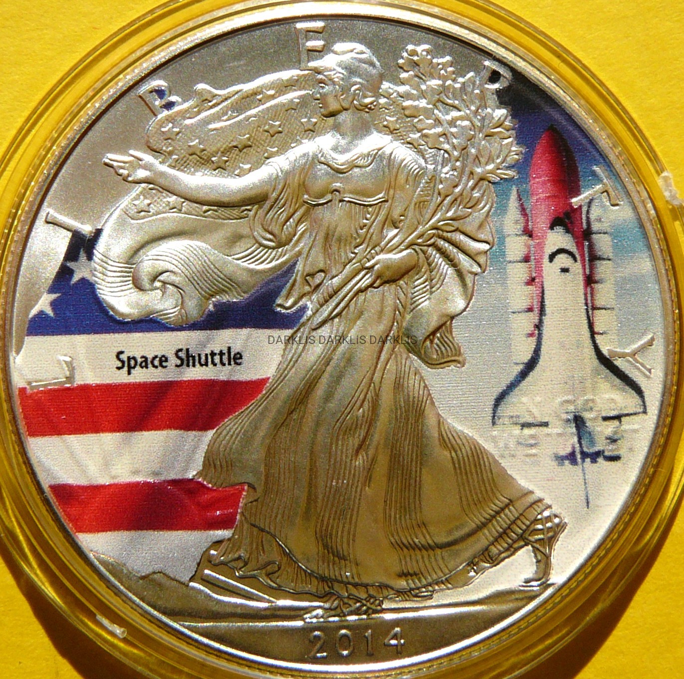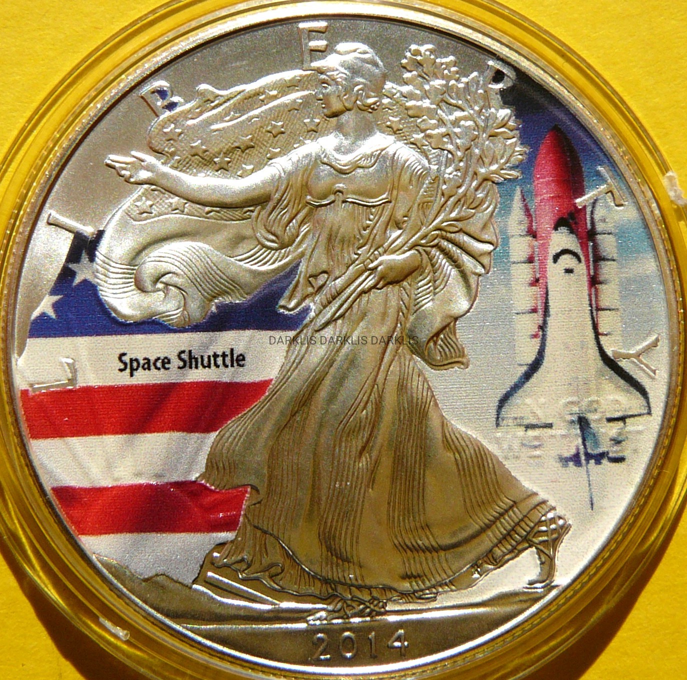 NA AUKCJI WYSTAWIANA JEST PRZEPIĘKNA ORYGINALNA SREBRNA MONETA KOLEKCJONERSKA PLATEROWANA KOLOR - DOLLAR - USA 2014 - EAGLE - BOGINI WOLNOŚCI - WAHADŁOWIEC KOSMICZNY - CZYSTE SREBRO PRÓBY 999 - UNCJA - MATT - KOLOR - RARYTAS - RZADKA - NA INNYCH AUKCJACH WYSTAWIAM MONETY Z TEJ SERII - ZAPRASZAM DO OBEJRZENIA