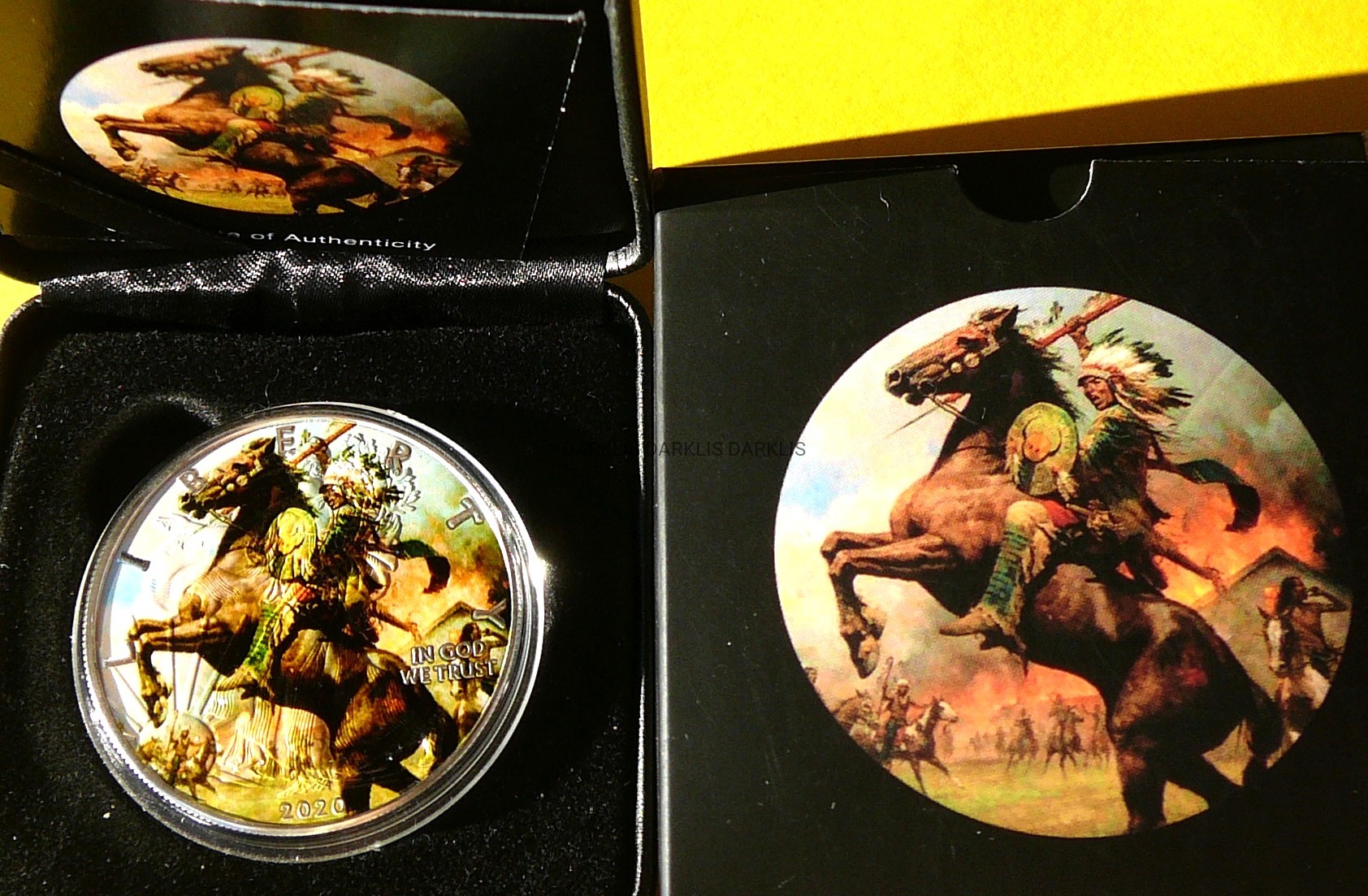NA AUKCJI WYSTAWIANA JEST PRZEPIĘKNA ORYGINALNA SREBRNA MONETA KOLEKCJONERSKA - DOLLAR - USA 2020 - INDIANIN SZALONY KOŃ - SŁYNNI WODZOWIE - seria : RDZENNI AMERYKANIE - CZYSTE SREBRO PRÓBY 999 - UNCJA - KOLOR - STEMPEL MATT - RARYTAS - BARDZO RZADKA - NAKŁAD TYLKO 100 SZTUK !! + CERTYFIKAT AUTENTYCZNOŚCI + ETUI + KARTON - NA INNYCH AUKCJACH WYSTAWIAM MONETY Z TEJ SERII - ZAPRASZAM DO OGLĄDANIA