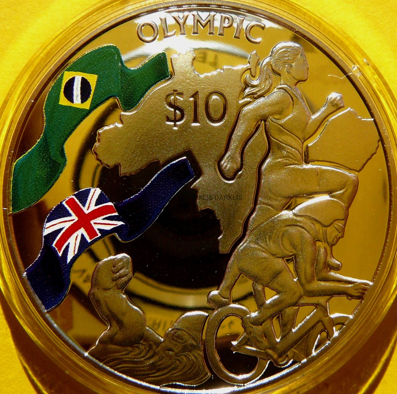 NA AUKCJI WYSTAWIONA JEST PRZEPIĘKNA ORYGINALNA i RZADKA SREBRNA MONETA KOLEKCJONERSKA - 10 DOLLARS - WYSPY DZIEWICZE 2016 - TRIATHLON / OLIMPIADA RIO DE JANEIRO - KOLOR - SREBRO PRÓBY 925 - STEMPEL LUSTRZANY - RARYTAS - RZADKA - NA INNYCH AUKCJACH WYSTAWIAM MONETY Z TEJ SERII - ZAPRASZAM DO OGLĄDANIA