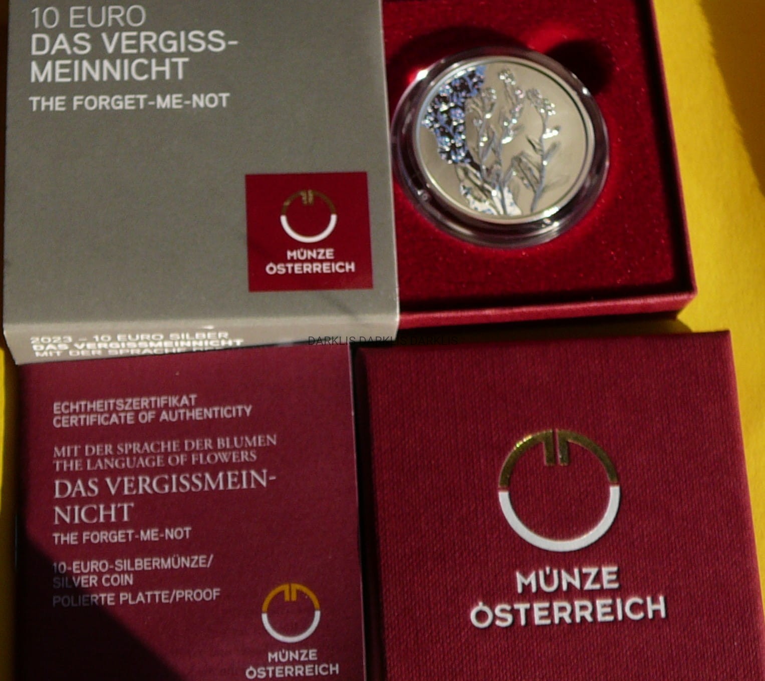 NA AUKCJI WYSTAWIANA JEST PRZEPIĘKNA ORYGINALNA SREBRNA MONETA KOLEKCJONERSKA - 10 EURO - AUSTRIA 2023 - NIEZAPOMINAJKA - seria : JĘZYK KWIATÓW - KOLOR - SREBRO PRÓBY 925 - PIĘKNA RARYTAS + CERTYFIKAT AUTENTYCZNOŚCI + ETUI + KARTON - MONETA WYBITA PRZEZ NARODOWĄ MENNICĘ AUSTRII - NA INNYCH AUKCJACH WYSTAWIAM MONETY Z TEJ SERII - ZAPRASZAM DO OGLĄDANIA