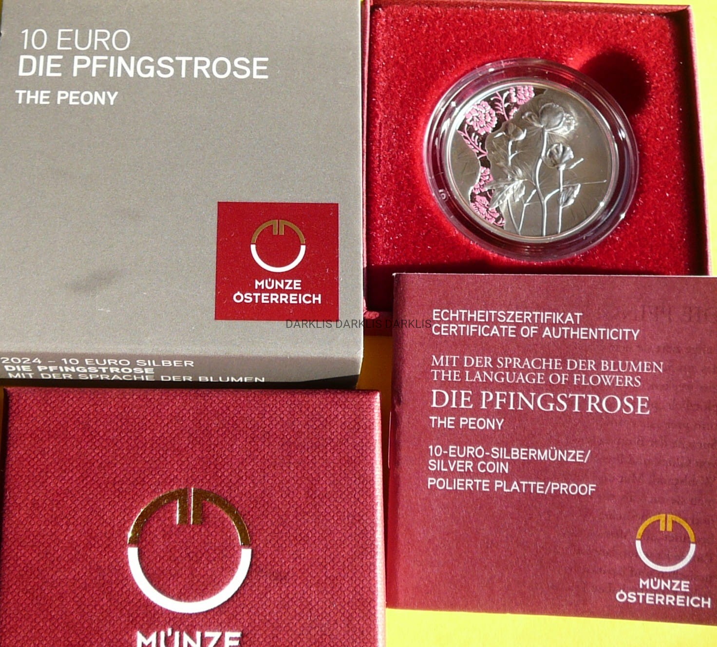 NA AUKCJI WYSTAWIANA JEST PRZEPIĘKNA ORYGINALNA SREBRNA MONETA KOLEKCJONERSKA - 10 EURO - AUSTRIA 2024 - PIWONIA KOLOROWA - seria : JĘZYK KWIATÓW - SREBRO PRÓBY 925 - PROOF - MENNICZA - KOLOR - PIĘKNA RARYTAS + CERTYFIKAT AUTENTYCZNOŚCI + ETUI + KARTON - MONETA WYBITA PRZEZ NARODOWĄ MENNICĘ AUSTRII w WIEDNIU - NA INNYCH AUKCJACH WYSTAWIAM MONETY Z TEJ SERII - ZAPRASZAM DO OGLĄDANIA