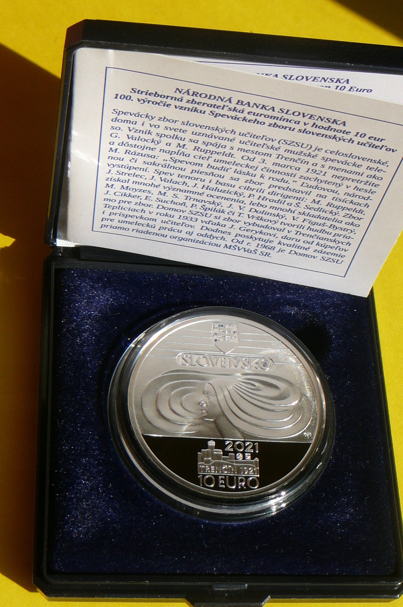 NA AUKCJI WYSTAWIANA JEST ORYGINALNA SREBRNA i RZADKA MONETA KOLEKCJONERSKA - 10 EURO - REPUBLIKA SŁOWACKA 2021 - 100-LECIE CHÓRU NAUCZYCIELI SŁOWACKICH - RARYTAS - STEMPEL LUSTRZANY - SREBRO 925 - RZADKA - NAKŁAD 6.500 SZTUK !! + ETUI + CERTYFIKAT AUTENTYCZNOŚCI - POLECAM - MAM INNE MONETY Z TEJ SERII - ZAPRASZAM DO OGLĄDANIA