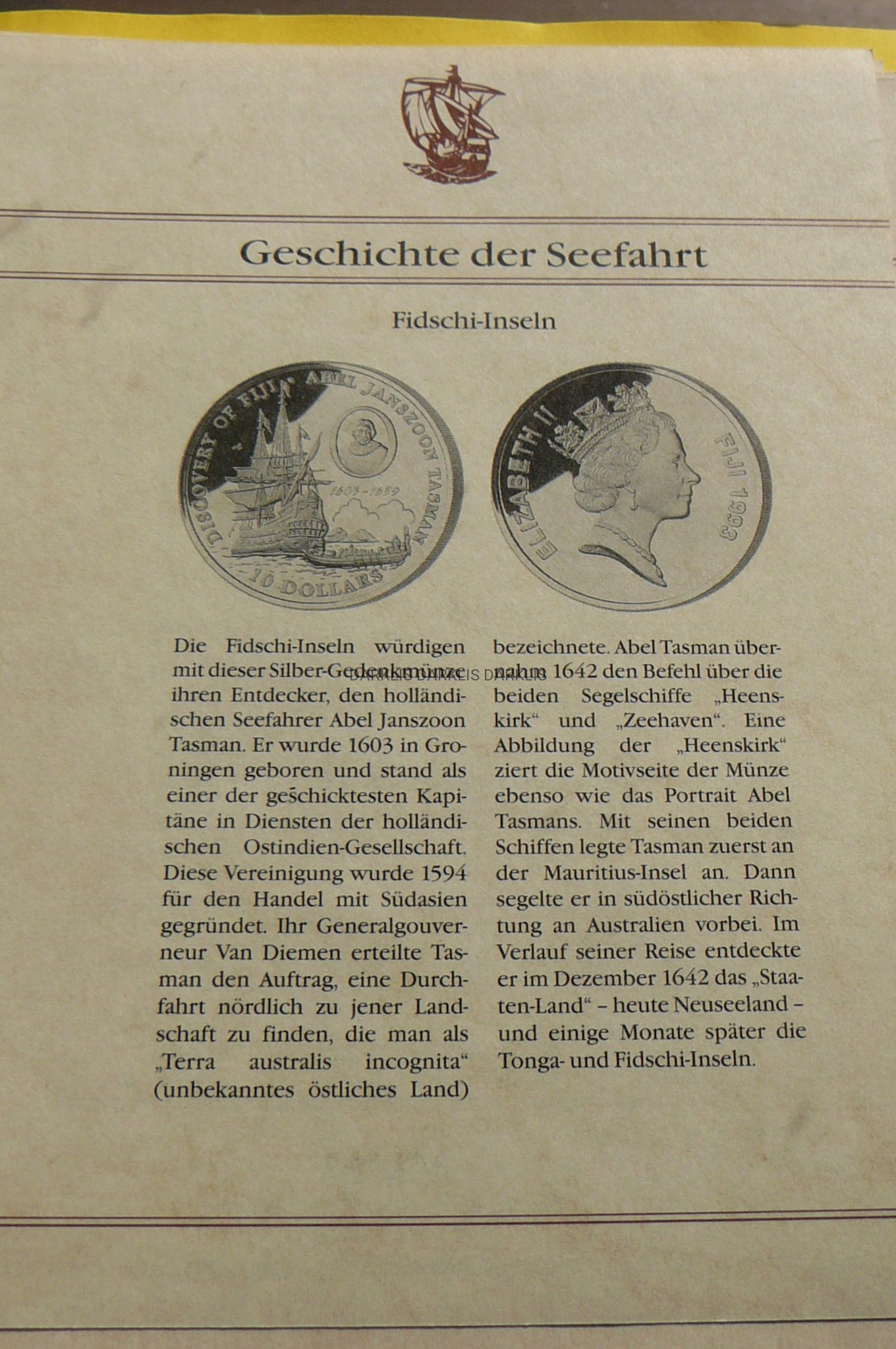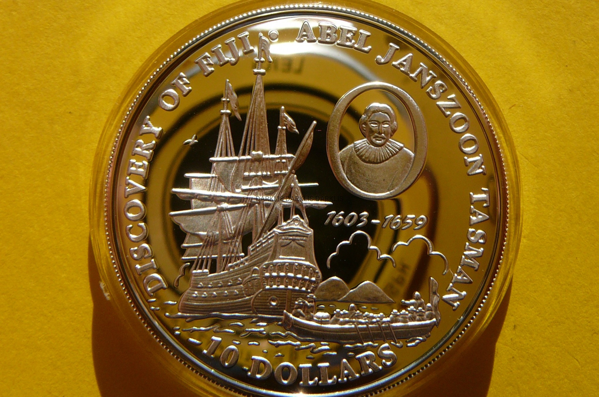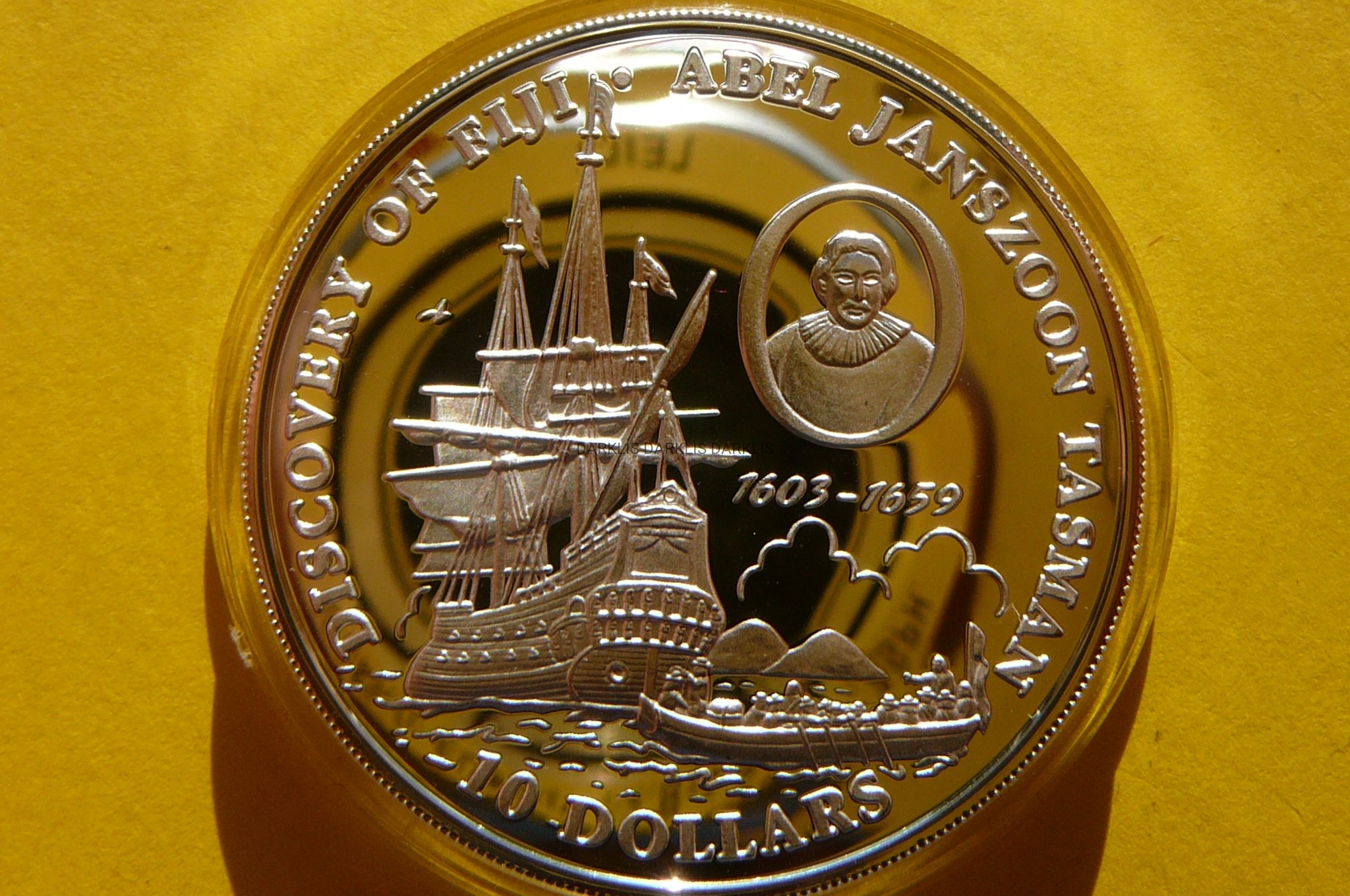 NA AUKCJI WYSTAWIONA JEST PRZEPIĘKNA ORYGINALNA SREBRNA MONETA KOLEKCJONERSKA - 10 DOLLARS - FIJI 1993 - 350 ROCZNICA - ODKRYCIE FIDŻI ŻAGLOWIEC ABEL JANSZOON TASMAN - SREBRO 925 - UNCJA - PROOF + CERTYFIKAT AUTENTYCZNOŚCI - NA INNYCH AUKCJACH WYSTAWIAM MONETY Z TEJ SERII - ZAPRASZAM DO OGLĄDANIA