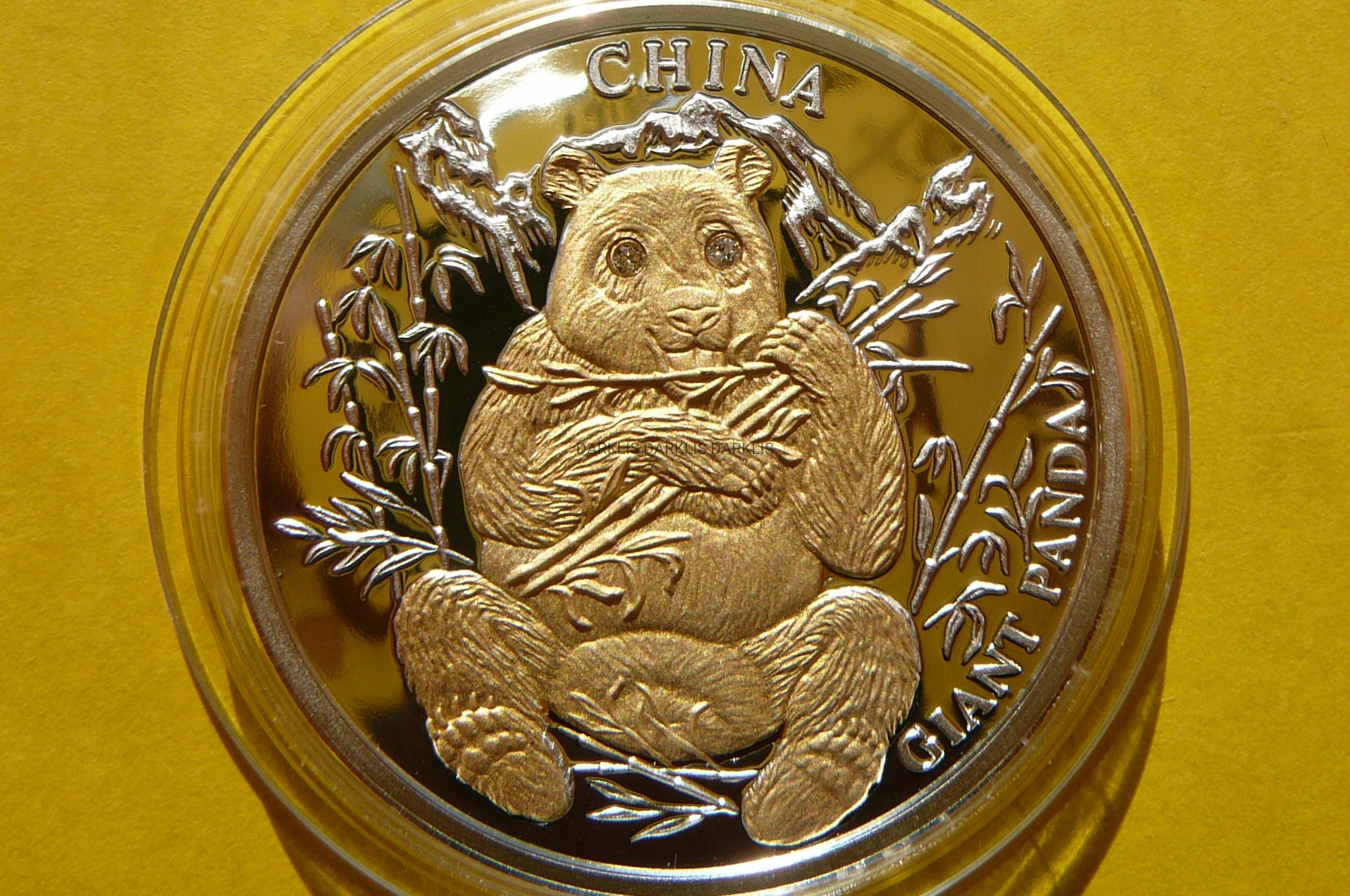 NA AUKCJI WYSTAWIANA JEST PRZEPIĘKNA JEDNA ORYGINALNA i RZADKA SREBRNA MONETA KOLEKCJONERSKA PLATEROWANA CZYSTYM ZŁOTEM 24 KARAT z DWOMA BRYLANTAMI - 10 DOLLARS - LIBERIA 2004 - PANA WIELKA z CHIN - ZAGROŻONE GATUNKI / OCHRONA ŻYCIA DZIKICH ZWIERZĄT - CZYSTE SREBRO PRÓBY 999 PLATEROWANE ZŁOTEM 24 KARAT + DWA BRYLANTY W OCZACH - PROOF - MENNICZA - BARDZO RZADKA i DROGA RARYTAS - POLECAM - NA INNYCH AUKCJACH WYSTAWIAM MONET z TEJ SERII z OSTATNICH ZDJĘĆ - ZAPRASZAM DO OBEJRZENIA AUKCJI