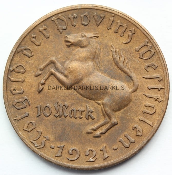 NA AUKCJI WYSTAWIANA JEST PRZEPIĘKNA STARA ORYGINALNA NIEMIECKA MONETA - 10 MAREK - NIEMCY WESTFALIA 1921 - STEIN / KOŃ - ORYGINAŁ - NA INNYCH AUKCJACH WYSTAWIAM DUŻO STARYCH NIEMIECKICH MONET TALARÓW i MAREK - ZAPRASZAM DO OBEJRZENIA - KOMIS STEIN 33/11/01/24