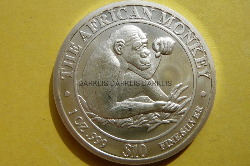 NA AUKCJI WYSTAWIONA JEST PRZEPIĘKNA SREBRNA MONETA - 10 DOLLARS - SOMALIA 2002 - MAŁPA/GORYL - SREBRO 999 - UNCJA - MATT - RARYTAS - NA INNYCH AUKCJACH WYSTAWIAM DUŻO SREBRNYCH MONET ZE ZWIERZĘTAMI - ZAPRASZAM DO OBEJRZENIA