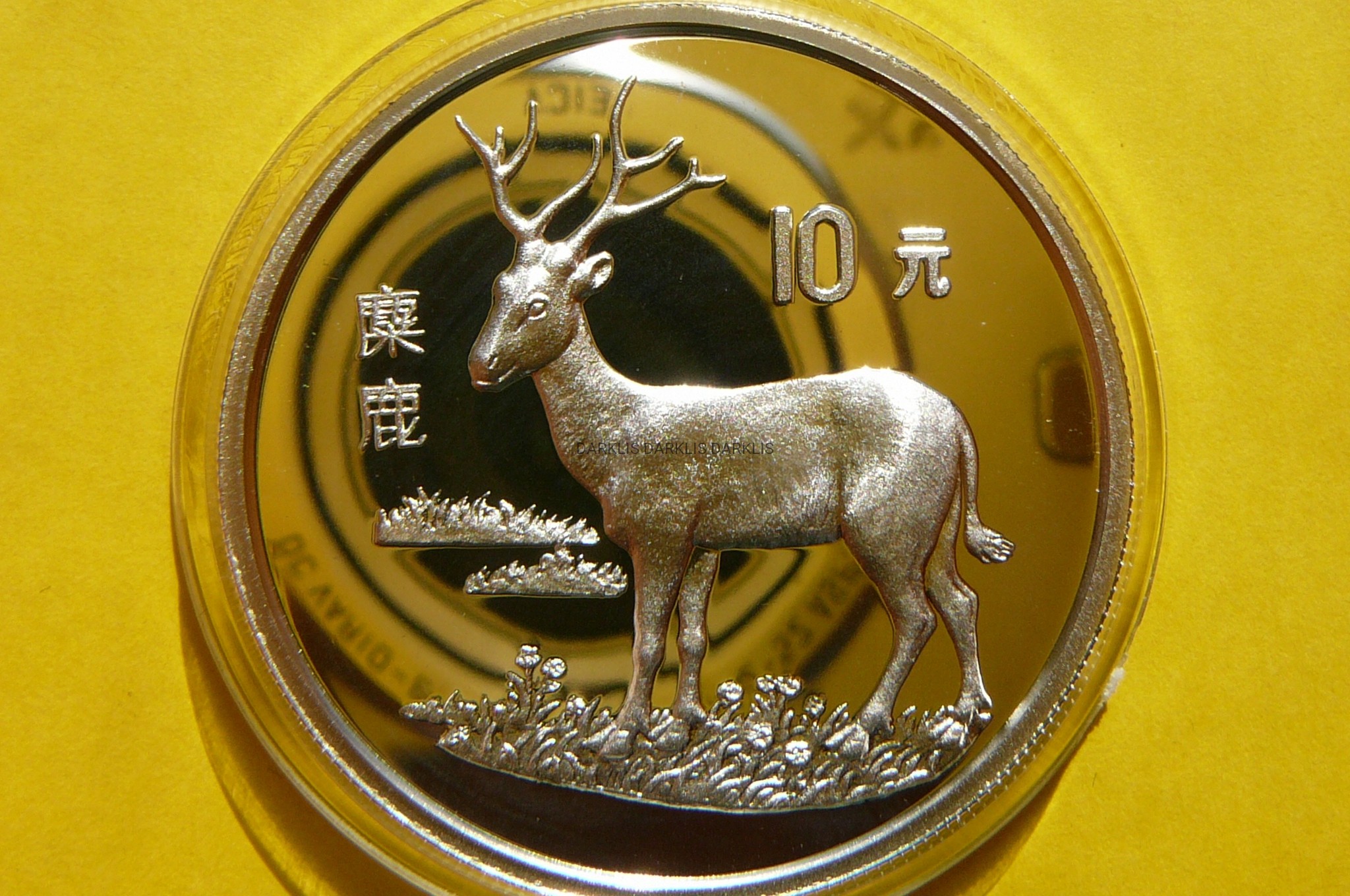 NA AUKCJI WYSTAWIANA JEST PRZEPIĘKNA ORYGINALNA SREBRNA MONETA KOLEKCJONERSKA - 10 YUAN - CHINY 1994 - JELEŃ - ZAGROŻONE GATUNKI / OCHRONA ŻYCIA DZIKICH ZWIERZĄT - SREBRO PRÓBY 925 - STEMPEL PROOF - RARYTAS - NA INNYCH AUKCJACH WYSTAWIAM MONETY Z TEJ SERII - ZAPRASZAM DO OBEJRZENIA - SPRZEDAŻ KOMISOWA
