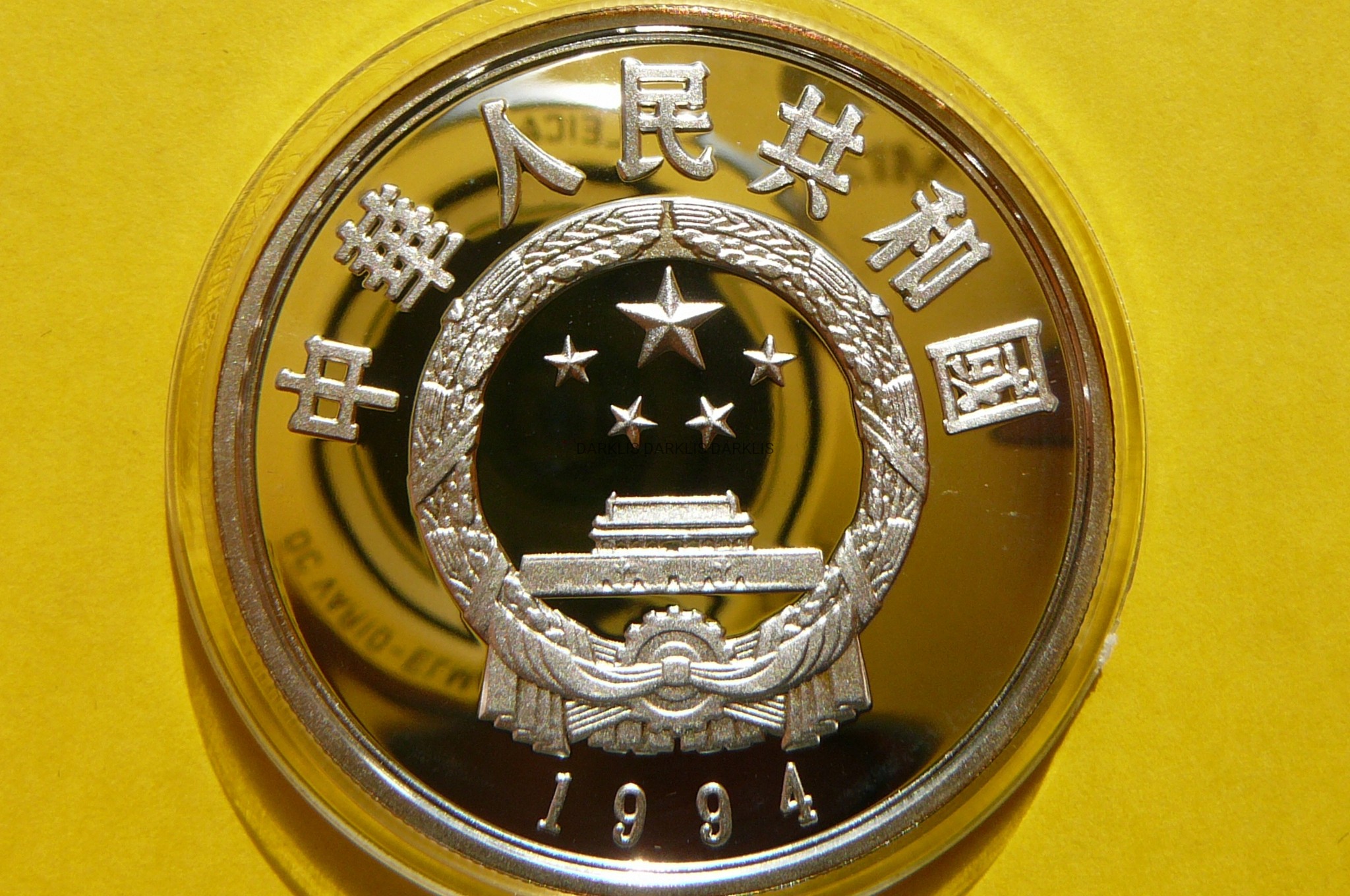 10 YUAN CHINY 1994 JELEŃ SREBRO 925 PROOF RZADKA!