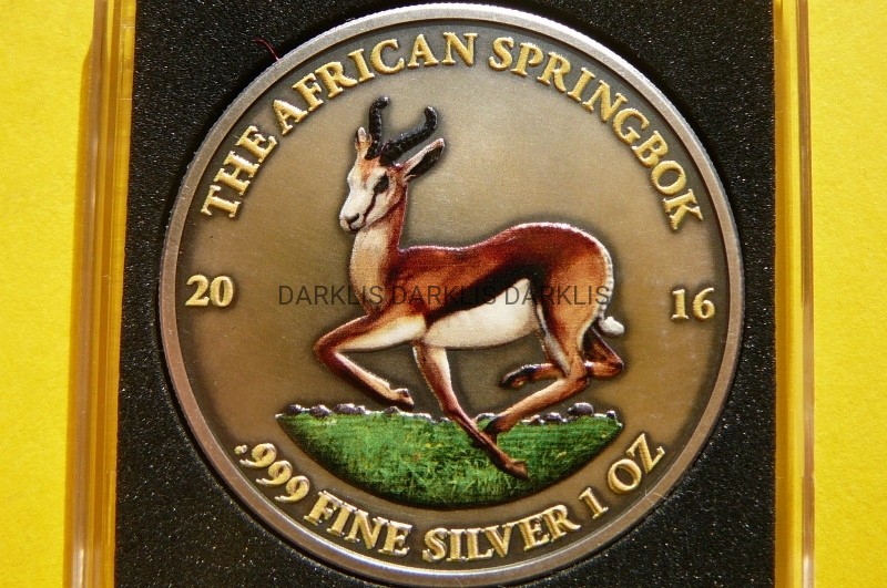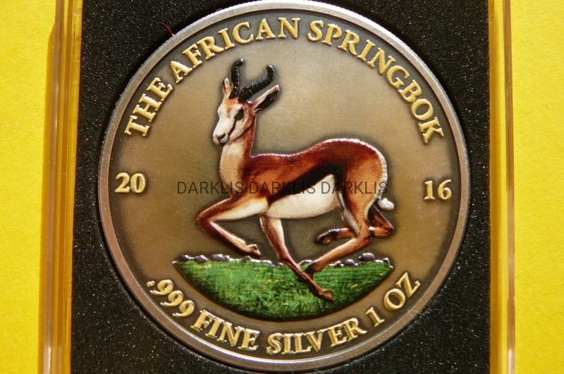 NA AUKCJI WYSTAWIONA JEST PRZEPIĘKNA SREBRNA MONETA KOLEKCJONERSKA - 1000 FRANK - GABON 2016 - THE AFRICAN SPRINGBOK - OKSYDOWANY - SREBRO 999 - UNCJA - KOLOR - RARYTAS - NA INNYCH AUKCJACH MONETY Z TEJ SERII - ZAPRASZAM DO OGLĄDANIA