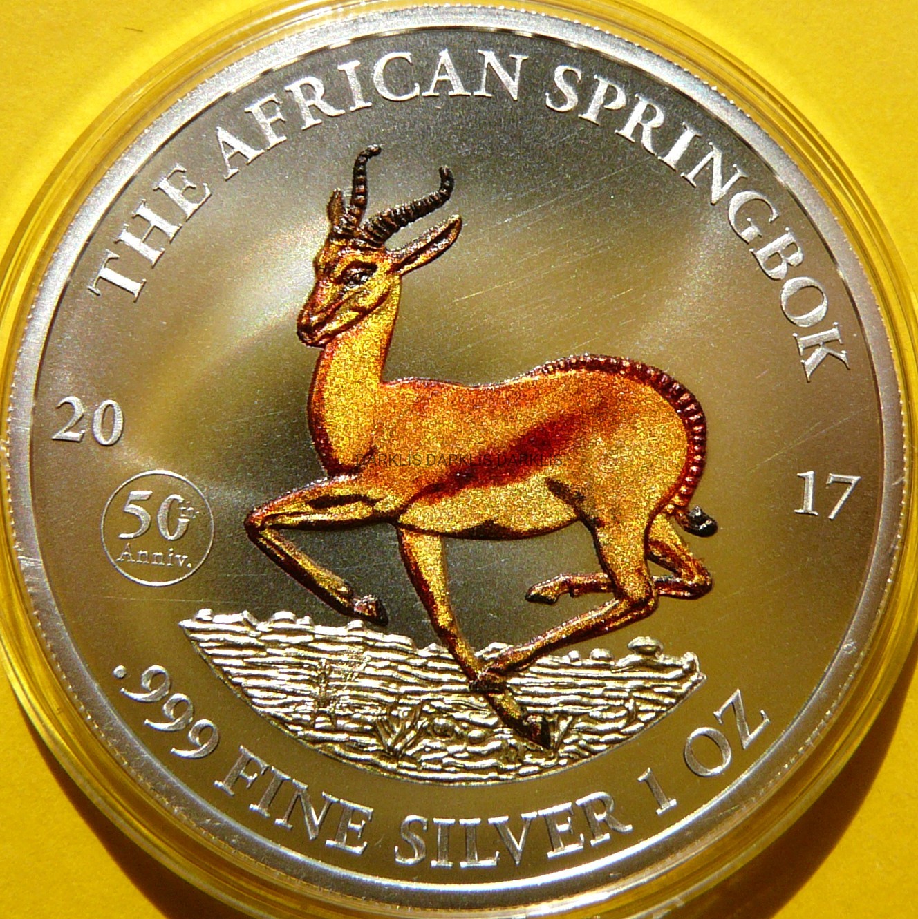 NA AUKCJI WYSTAWIANA JEST PRZEPIĘKNA ORYGINALNA SREBRNA KOLOROWA MONETA KOLEKCJONERSKA - 1000 FRANKÓW - GABON 2017 - ANTYLOPA SPRINGBOK - CZYSTE SREBRO PRÓBY 999 - UNCJA - KOLOR - RZADKA - MAŁY NAKŁAD - RARYTAS - NA INNYCH AUKCJACH WYSTAWIAM MONETY Z TEJ SERII - ZAPRASZAM DO OGLĄDANIA