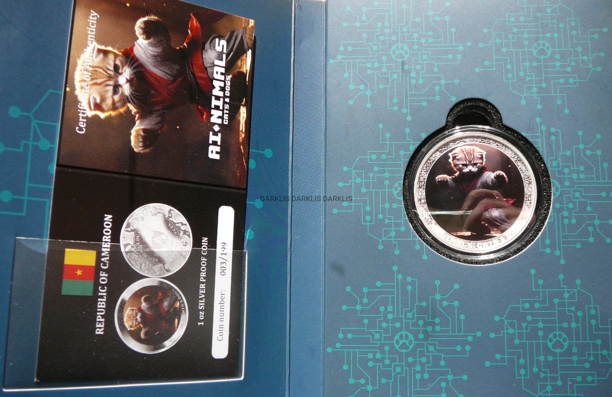 NA AUKCJI WYSTAWIANA JEST PRZEPIĘKNA ORYGINALNA I BARDZO RZADKA SREBRNA MONETA KOLEKCJONERSKA - 1000 FRANKÓW - KAMERUN 2025 - ZWIERZĘTA AI - KOTY KOT KUNG FU - CZYSTE SREBRO PRÓBY 999 - UNCJA - KOLOR - - MENNICZA - RARYTAS - BARDZO RZADKA - NAKŁAD TYLKO 199 SZTUK !! + CERTYFIKAT AUTENTYCZNOŚCI + ETUI - NA INNYCH AUKCJACH WYSTAWIAM MONETY Z TEJ SERII - ZAPRASZAM DO OGLĄDANIA