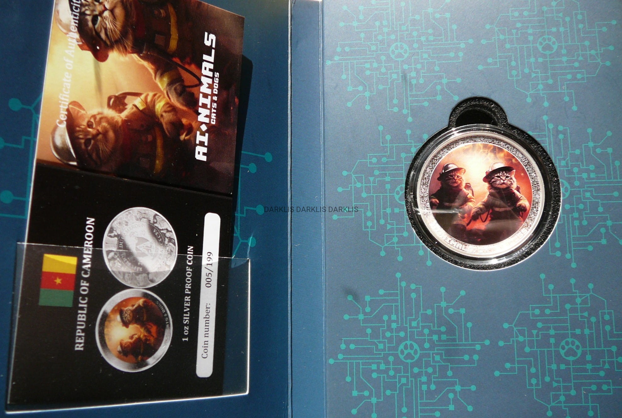 NA AUKCJI WYSTAWIANA JEST PRZEPIĘKNA ORYGINALNA I BARDZO RZADKA SREBRNA MONETA KOLEKCJONERSKA - 1000 FRANKÓW - KAMERUN 2025 - ZWIERZĘTA AI - KOTY KOT STRAŻAK - CZYSTE SREBRO PRÓBY 999 - UNCJA - KOLOR - - MENNICZA - RARYTAS - BARDZO RZADKA - NAKŁAD TYLKO 199 SZTUK !! + CERTYFIKAT AUTENTYCZNOŚCI + ETUI - NA INNYCH AUKCJACH WYSTAWIAM MONETY Z TEJ SERII - ZAPRASZAM DO OGLĄDANIA