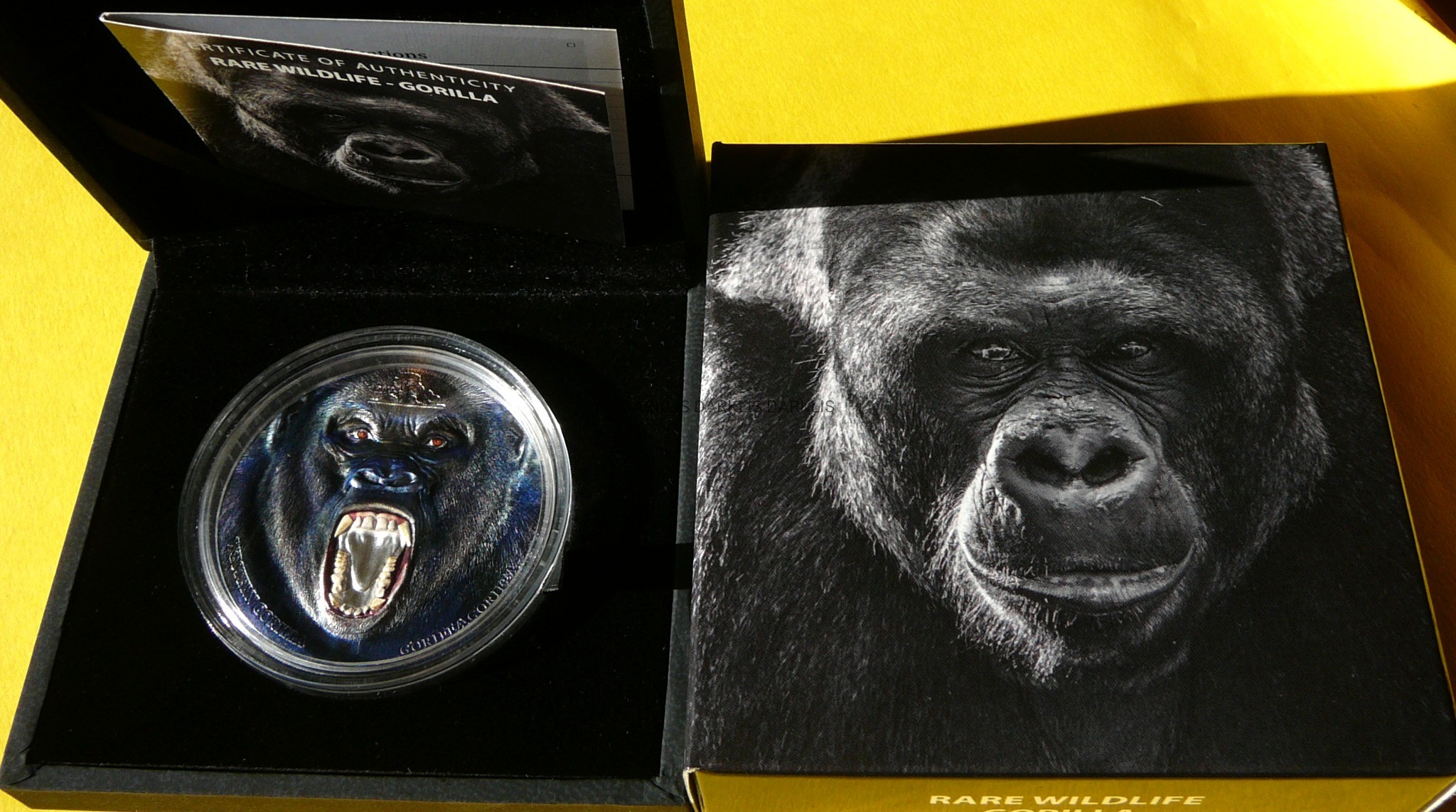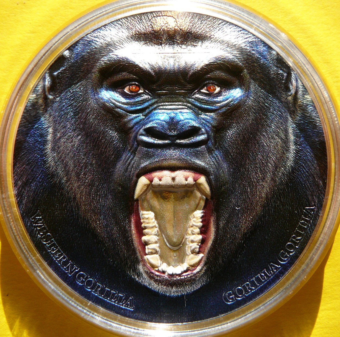 NA AUKCJI WYSTAWIONA JEST PRZEPIĘKNA ORYGINALNA i BARDZO RZADKA SREBRNA MONETA KOLEKCJONERSKA - 1500 SZYLINGÓW - TANZANIA 2019 - GORYL - OCHRONA DZIKIEJ PRZYRODY - CZYSTE SREBRO PRÓBY 999 - 2 UNCJE - KOLOR - HIGH RELIEF - STEMPEL LUSTRZANY - RARYTAS - BARDZO RZADKA - NAKŁAD TYLKO 999 SZTUK !! + CERTYFIKAT AUTENTYCZNOŚCI + ETUI + ORYGINALNY KARTON - NA INNYCH AUKCJACH WYSTAWIAM MONET Z TEJ SERII - ZAPRASZAM DO OGLĄDANIA
