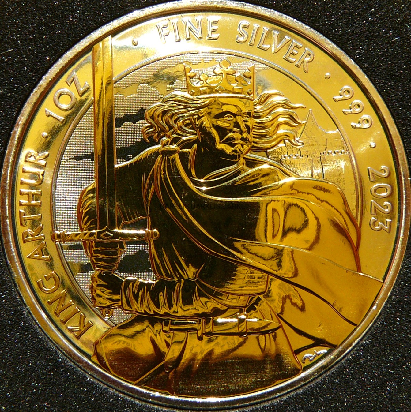 NA AUKCJI WYSTAWIONA JEST PRZEPIĘKNA ORYGINALNA i RZADKA SREBRNA MONETA KOLEKCJONERSKA PLATEROWANA 24 KARATOWYM ZŁOTEM - 2 FUNTY - WIELKA BRYTANIA 2023 - KRÓL ARTUR - CZYSTE SREBRO/ZŁOTO PRÓBY 999 - UNCJA - STEMPEL LUSTRZANY - MENNICZA - POLECAM - RARYTAS - NA INNYCH AUKCJACH WYSTAWIAM MONETY Z TEJ SERII - ZAPRASZAM DO OGLĄDANIA