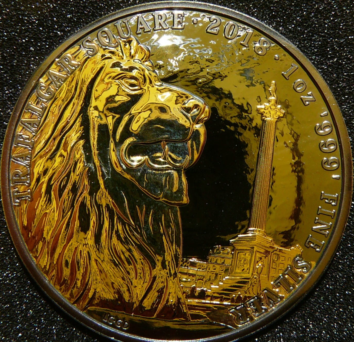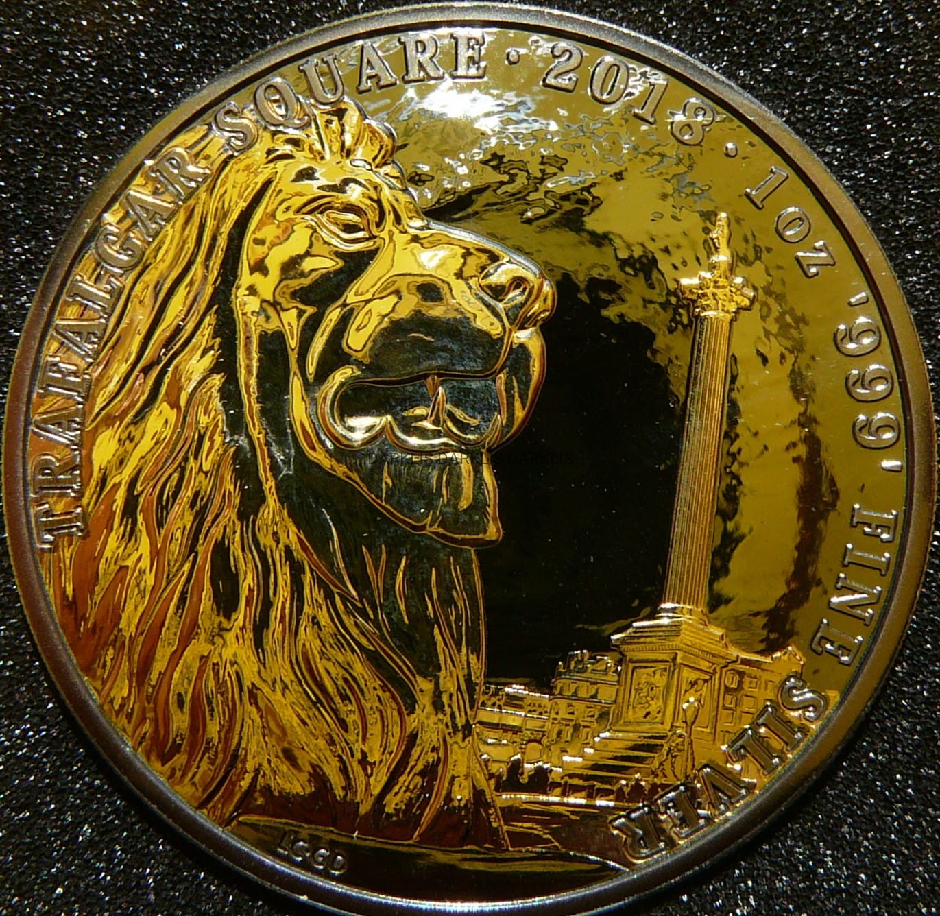 NA AUKCJI WYSTAWIANA JEST PRZEPIĘKNA SREBRNA MONETA KOLEKCJONERSKA PLATEROWANA 24 KARATOWYM ZŁOTEM i RUTHENEM - 2 FUNTY - BRYTANIA 2018 - LEW TRAFALGAR SQUARE - BLACK ENIGMA - CZYSTE SREBRO/ZŁOTO PRÓBY 999 - UNCJA - BLACK RUTHENIUM - MENNICZA - RARYTAS - NA INNYCH AUKCJACH MONETY Z TEJ SERII - ZAPRASZAM DO OGLĄDANIA