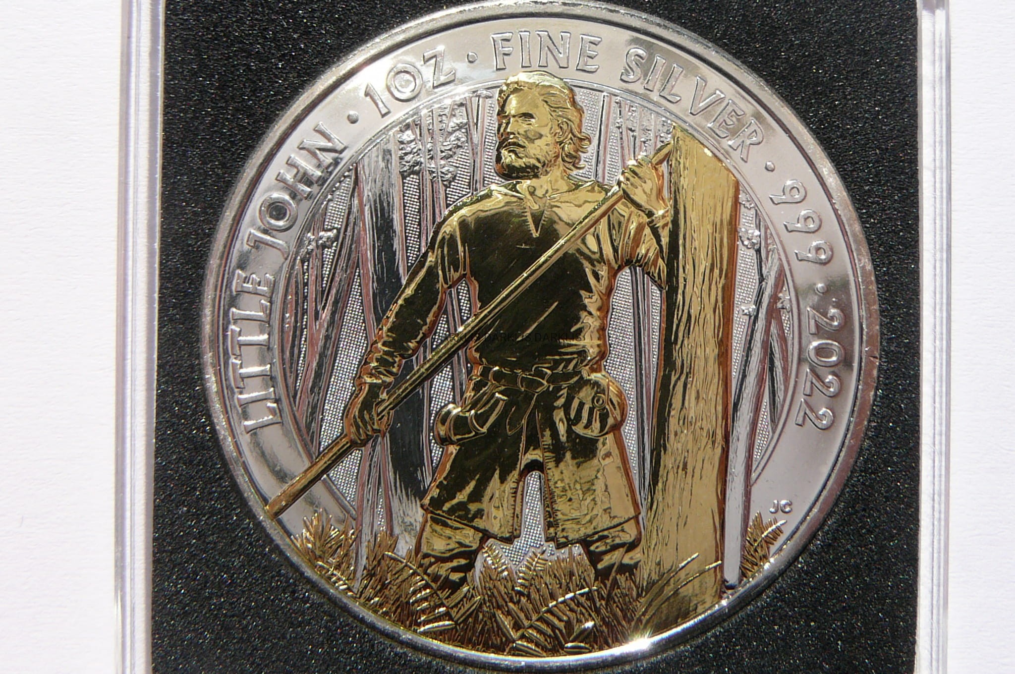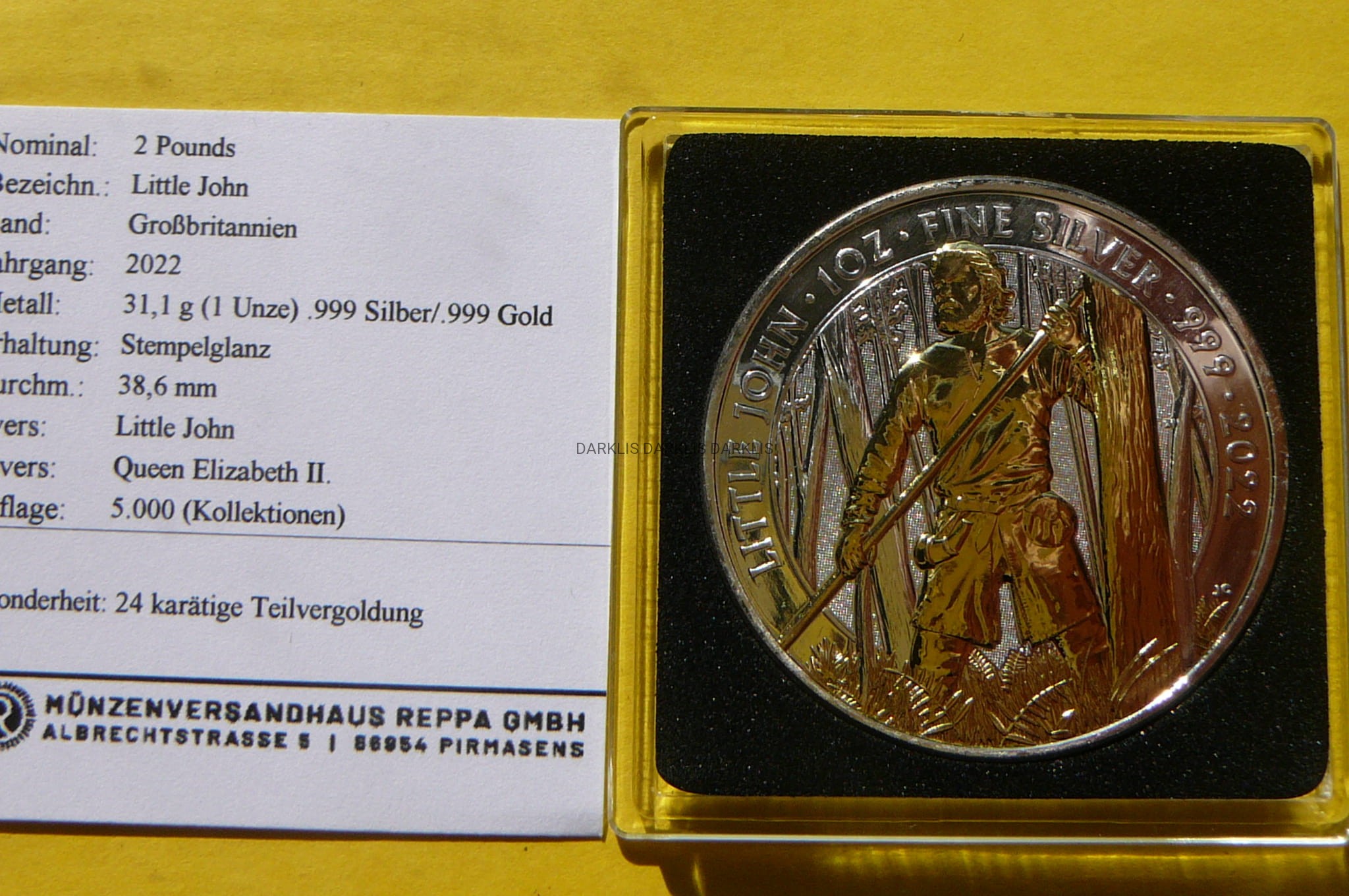 NA AUKCJI WYSTAWIANA JEST PRZEPIĘKNA ORYGINALNA SREBRNA MONETA KOLEKCJONERSKA PLATEROWANA 24 KARATOWYM ZŁOTEM - 2 FUNTY -WIELKA BRYTANIA 2022 - MAŁY JOHN - CZYSTE SREBRO/ZŁOTO PRÓBY 999 - UNCJA - RARYTAS - RZADKA - LIMITOWANA EDYCJA - NAKŁAD TYLKO 5.000SZTUK !! + CERTYFIKAT AUTENTYCZNOŚCI - NA INNYCH AUKCJACH WYSTAWIAM MONETY Z TEJ SERII - ZAPRASZAM DO OGLĄDANIA