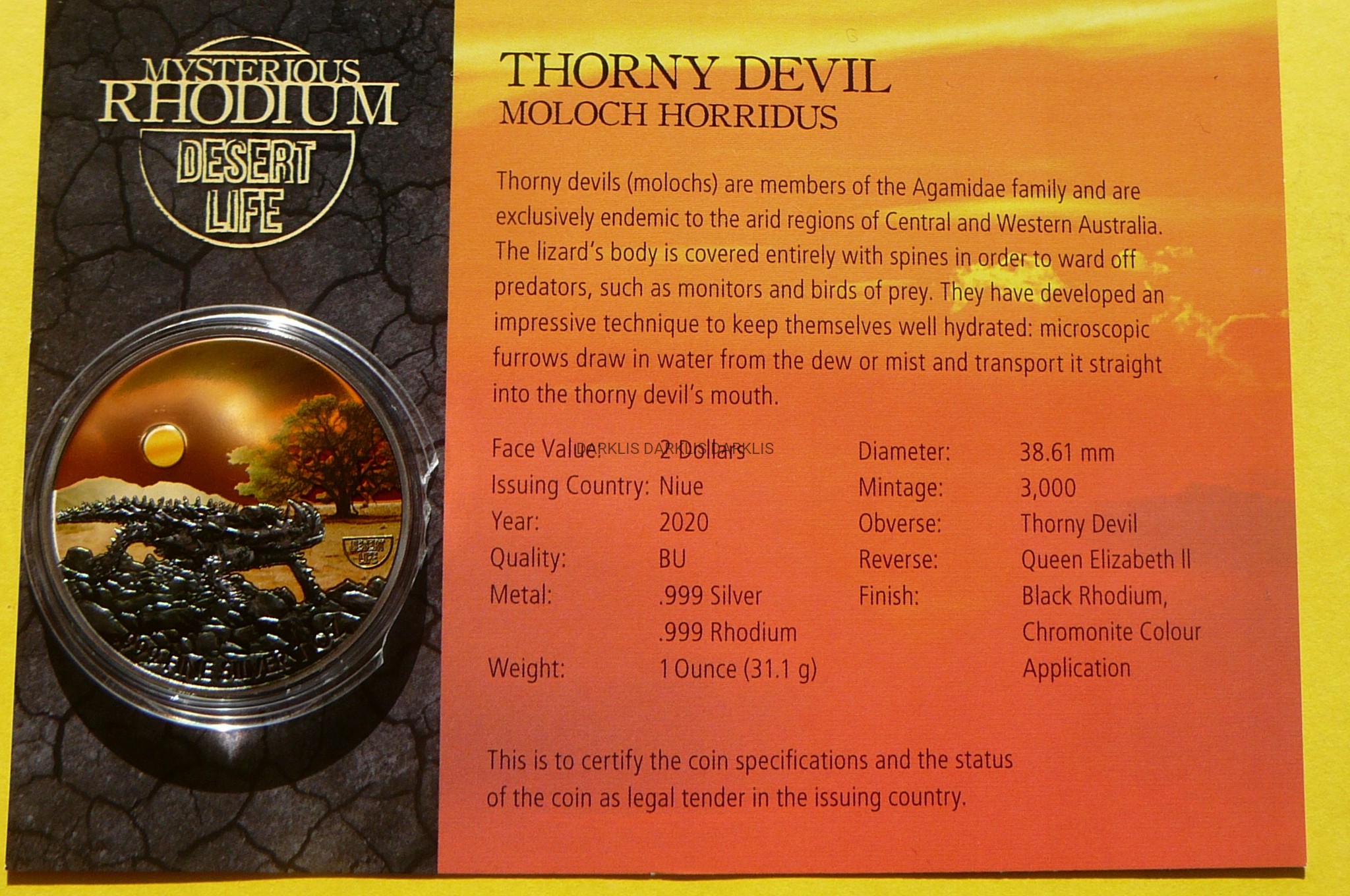 NA AUKCJI WYSTAWIONA JEST PRZEPIĘKNA ORYGINALNA i BARDZO RZADKA SREBRNA MONETA KOLEKCJONERSKA - 2 DOLLARS - NIUE 2020 - MOLOCH STRASZLIWY - seria : ŻYCIE NA PUSTYNI - MENNICZA - CZYSTE SREBRO PRÓBY 999 - UNCJA - BLACK ENIGMA - BLACK RUTHENIUM - STEMPEL LUSTRZANY - CHROMATYCZNY KOLOR - RARYTAS - BARDZO RZADKA - NAKŁAD TYLKO 3.000 SZTUK!! + CERTYFIKAT AUTENTYCZNOŚCI - NA INNYCH AUKCJACH MONETY Z TEJ SERII CAŁY KOMPLET WIDOCZNY NA OSTATNICH ZDJĘCIACH - ZAPRASZAM DO OGLĄDANIA