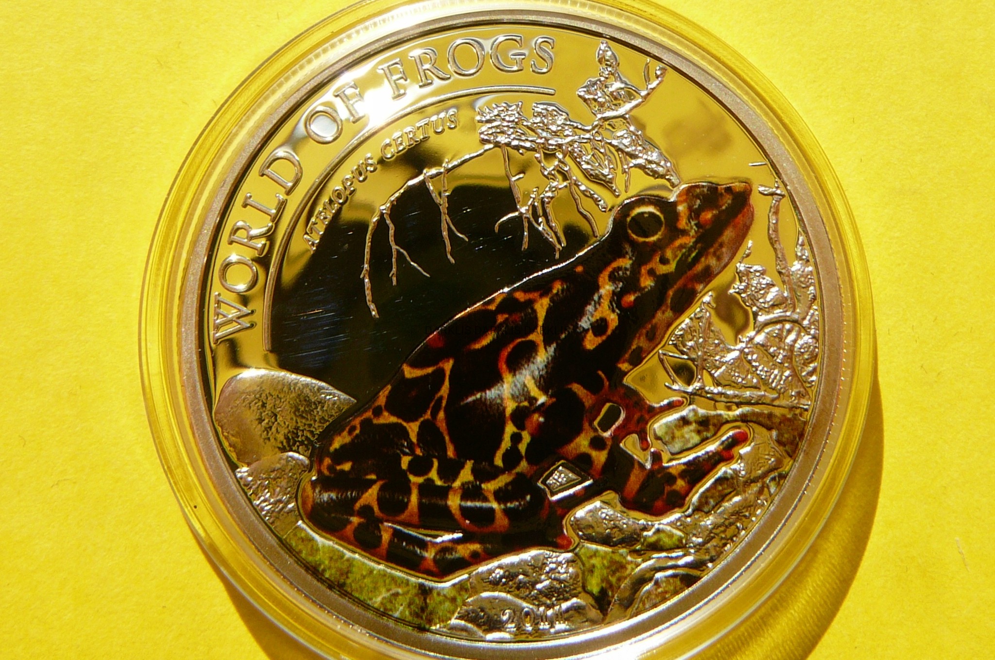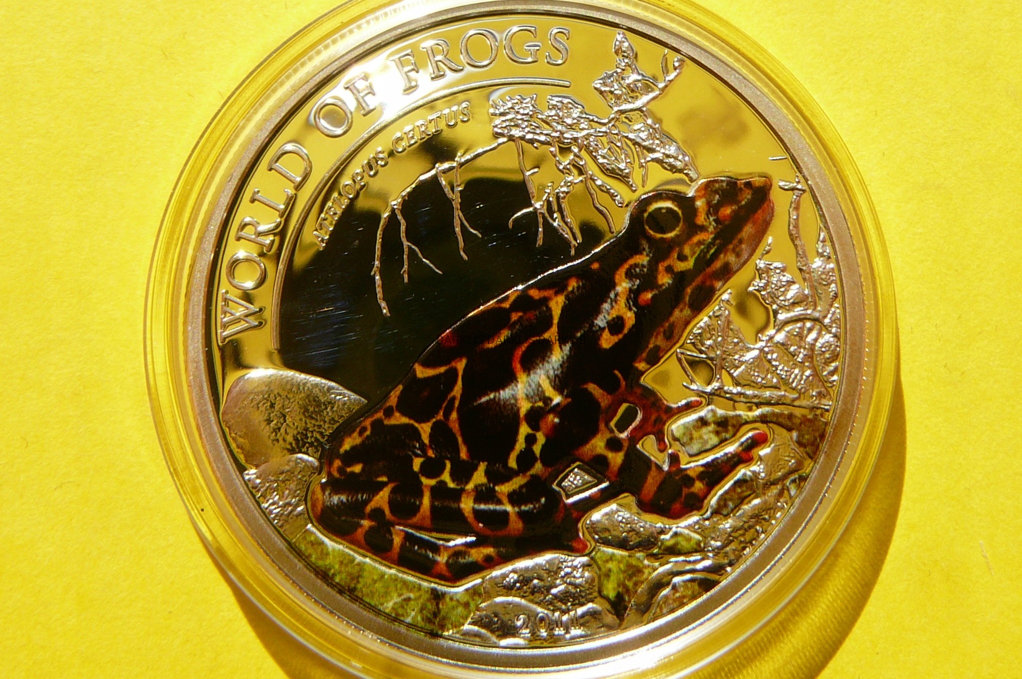 NA AUKCJI WYSTAWIANA JEST PRZEPIĘKNA BARDZO RZADKA SREBRNA MONETA KOLEKCJONERSKA - 2 DOLLARS - PALAU 2011- ŻABA ROPUCHA ATELOPUS CERTUS / ROZDRABNIACZ ROGATY DARIENKI - z serii: ŚWIAT ŻAB - SREBRO 925 - PROOF - MENNICZA - RZADKA NAKŁAD TYLKO 500 SZTUK - PIĘKNA RARYTAS + ETUI + KARTON + CERTYFIKAT AUTENTYCZNOŚCI - NA INNYCH AUKCJACH MONETY Z TEJ SERII - ZAPRASZAM DO OGLĄDANIA
