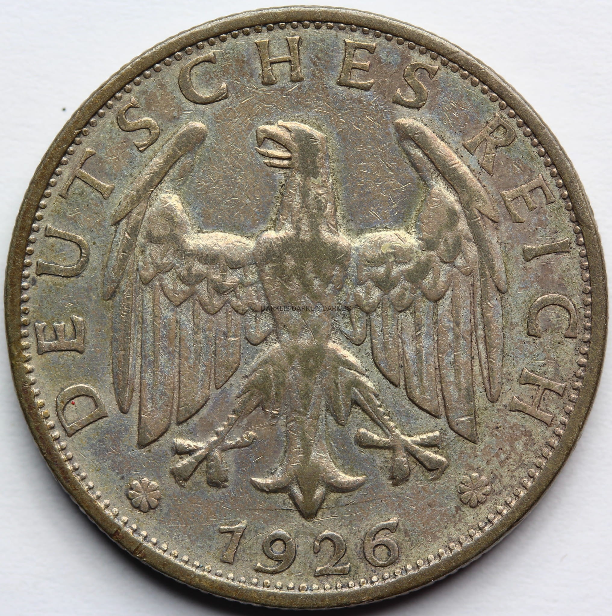 NA AUKCJI WYSTAWIANA JEST PRZEPIĘKNA ORYGINALNA STARA SREBRNA MONETA - 2 REICHSMARK - WEIMAR 1926 - E MENNICA MULENHUTTEN - OBIEGOWA - SREBRO - SUPER STAN - RARYTAS - NA INNYCH AUKCJACH WYSTAWIAM MONETY Z TEJ SERII - ZAPRASZAM DO OBEJRZENIA - 7/03/01/25
