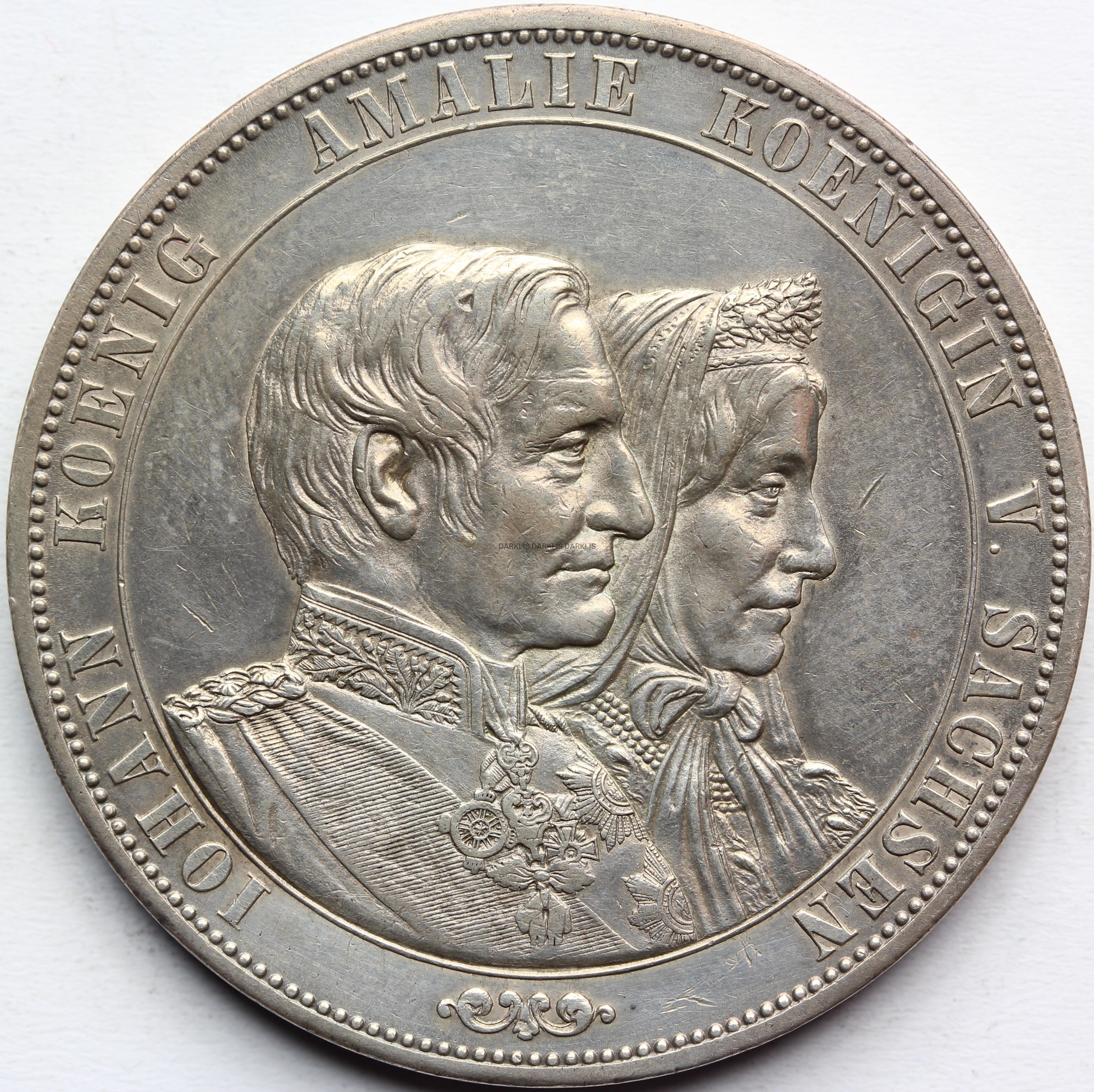NA AUKCJI WYSTAWIANA JEST PRZEPIĘKNA ORYGINALNA STARA i RZADKA SREBRNA MONETA - 2 TALARY - NIEMCY SAKSONIA 1872 - JOHANN ZŁOTE GODY - SREBRO - SUPER STAN - ORGINAŁ - RARYTAS - NA INNYCH AUKCJACH WYSTAWIAM MONETY Z TEJ SERII - ZAPRASZAM DO OGLĄDANIA - 3/30/09/25