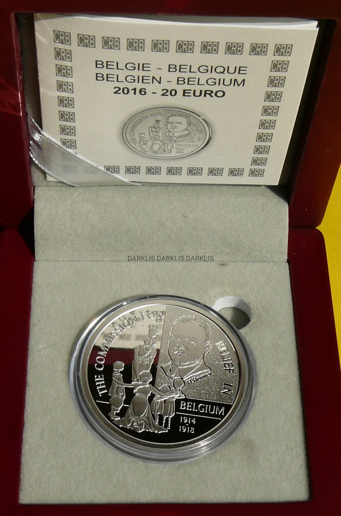 NA AUKCJI WYSTAWIONA JEST PRZEPIĘKNA ORYGINALNA SREBRNA MONETA KOLEKCJONERSKA - 20 EURO - BELGIA 2016 - 100 ROCZNICA POWSTANIA KOMITETU POMOCY BELGII - SREBRO PRÓBY 925 - RARYTAS - RZADKA - NAKŁAD TYLKO 2.500 SZTUK !! + CERTYFIKAT AUTENTYCZNOŚCI + ETUI + KARTON - NA INNYCH AUKCJACH WYSTAWIAM MONETY Z TEJ SERII - ZAPRASZAM DO OGLĄDANIA