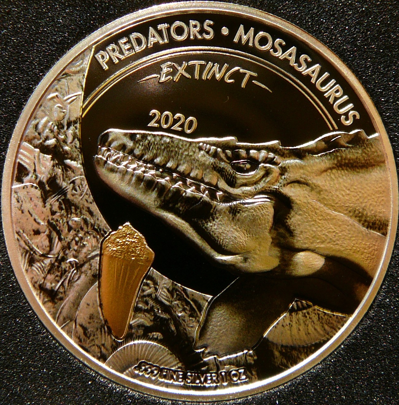 NA AUKCJI WYSTAWIONA JEST PRZEPIĘKNA ORYGINALNA i RZADKA SREBRNA MONETA KOLEKCJONERSKA - 20 FRANKÓW - KONGO 2020 - MOZAZAUR - seria : WYMARŁE DRAPIEŻNIK - CHROMOWY KOLOR - CZYSTE SREBRO/ZŁOTO PRÓBY 999 - MENNICZA - RARYTAS - RZADKA + CERTYFIKAT AUTENTYCZNOŚCI - NA INNYCH AUKCJACH WYSTAWIAM MONETY Z TEJ SERII - ZAPRASZAM DO OGLĄDANIA