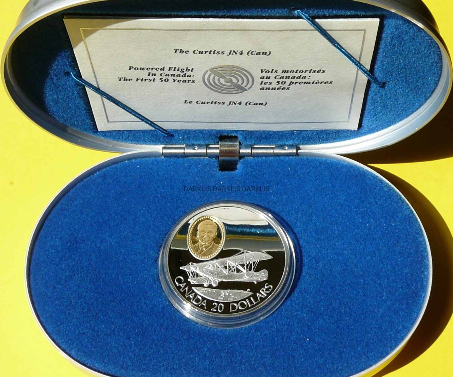 NA AUKCJI WYSTAWIONA JEST PRZEPIĘKNA ORYGINALNA PLATEROWANA 24 KARATOWYM ZŁOTEM SREBRNA MONETA KOLEKCJONERSKA - 20 DOLLARS - KANADA 1992 - SAMOLOT CURTISS JN-4 JENNY - moneta z serii: LOTNICTWO KANADYJSKIE - SREBRO/ZŁOTO PRÓBY 925 - UNCJA - STEMPEL LUSTRZANY - MENNICZA - RARYTAS + CERTYFIKAT AUTENTYCZNOŚCI + ETUI + KARTON - NA INNYCH AUKCJACH WYSTAWIAM MONETY Z TEJ SERII - ZAPRASZAM DO OGLĄDANIA