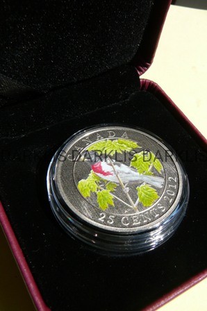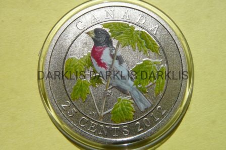 WYSTAWIANA NA AUKCJI JEST PRZEPIĘKNA MONETA - 25 CENT - KANADA 2012 - ROSE BREASTED GROSBEAK - KARDYNAŁEK ŁUSZCZYK STROJNY - MENNICZA - MAŁY NAKŁAD TYLKO 14TYS. SZTUK - RARYTAS JEDYNA NA ALLEGRO + ETUI - WYDANE PRZEZ KANADYJSKĄ MENNICĘ KRÓLEWSKĄ - NA INNYCH AUKCJACH MONETY Z TEJ SERII