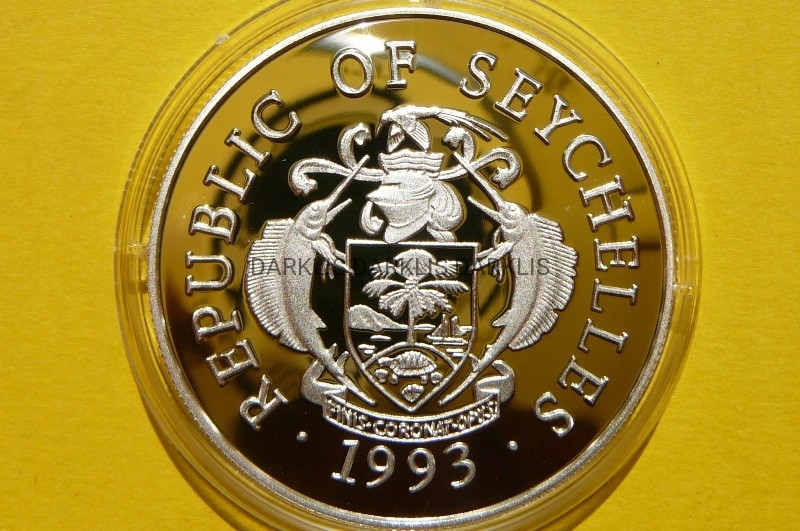 NA AUKCJI WYSTAWIONA JEST PRZEPIĘKNA ORYGINALNA SREBRNA MONETA KOLEKCJONERSKA - 25 RUPII - SESZELE 1993 - ŻAGLOWIEC - PRZYBYCIE FRANCUZÓW - SREBRO 925 - PROOF - UNCJA - RARYTAS - RZADKA - MENNICZA - NA INNYCH AUKCJACH MONETY Z TEJ SERII INNE - ZAPRASZAM DO OBEJRZENIA