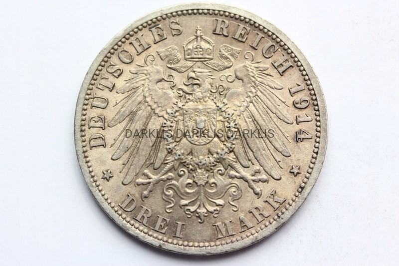 NA AUKCJI WYSTAWIANA JEST PRZEPIĘKNA SREBRNA STARA ORYGINALNA MONETA KOLEKCJONERSKA - 3 MARKI KAISERREICH PRUSY 1914 - WILHELM II - SUPER STAN - ORYGINAŁ - RARYTAS - NA INNYCH AUKCJACH WYSTAWIAM DUŻO STARYCH NIEMIECKICH MONET TALARÓW i MAREK ZAPRASZAM DO OBEJRZENIA - KOMI 223/24/03/21