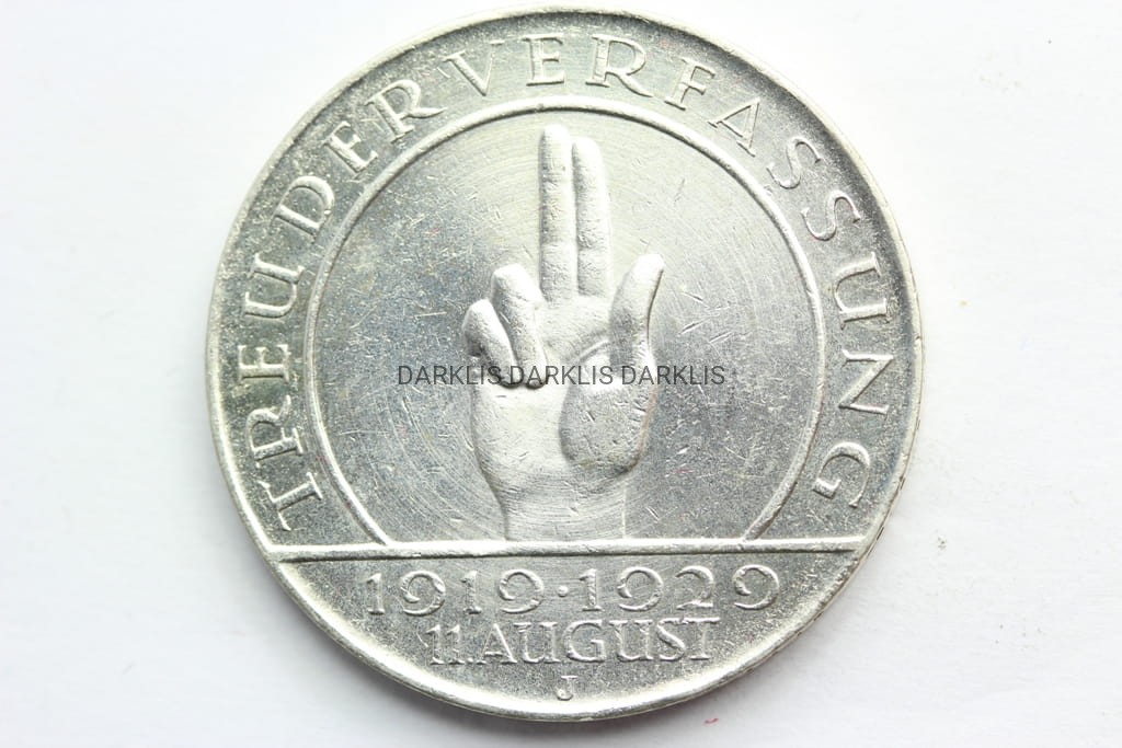 NA AUKCJI WYSTAWIANA JEST PRZEPIĘKNA SREBRNA STARA i ORYGINALNA MONETA NIEMIECKA - 3 REICHSMARK - WEIMAR 1929 J - MENNICA HAMBURG - HINDENBURG - 10 ROCZNICA KONSTYTUCJI WEIMARSKIEJ - SUPER STAN!! - ORYGINAŁ - RARYTAS - NA INNYCH AUKCJACH WYSTAWIAM DUŻO NIEMIECKICH MONET TALARÓW i MAREK ZAPRASZAM DO OBEJRZENIA - KOMIS 6/23/06/23
