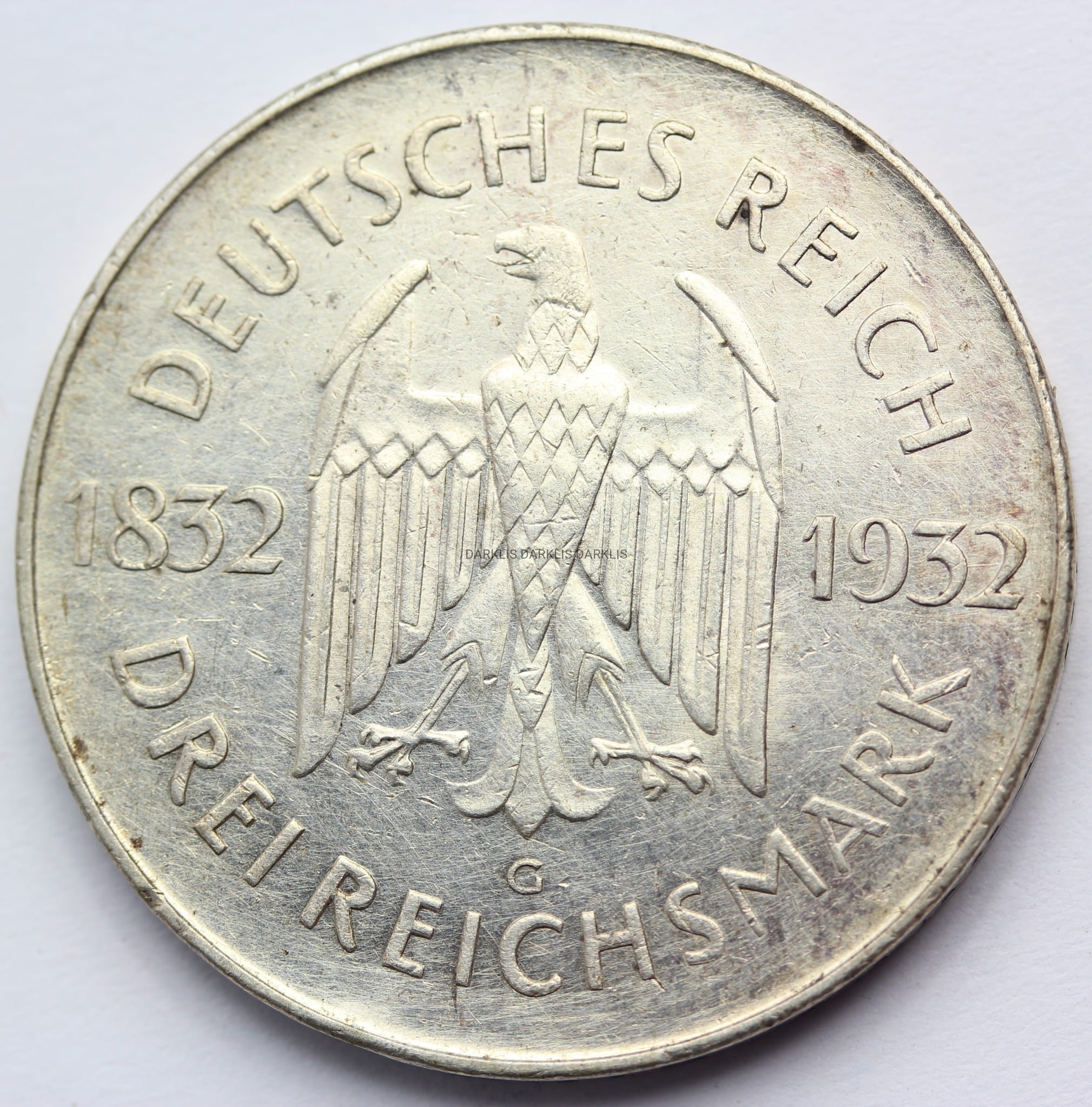 NA AUKCJI JEST PRZEPIĘKNA SREBRNA ORYGINALNA STARA MONETA - 3 MARKI - WEIMAR NIEMCY 1932 -G- GOETHE SUPER - ORYGINAŁ - W REALU ŁADNIEJSZA NIŻ NA ZDJĘCIU - NA INNYCH AUKCJACH WYSTAWIAM DUŻO MONET Z NIEMIEC I TALARÓW - ZAPRASZAM DO OGLĄDANIA - 25/12/07/24