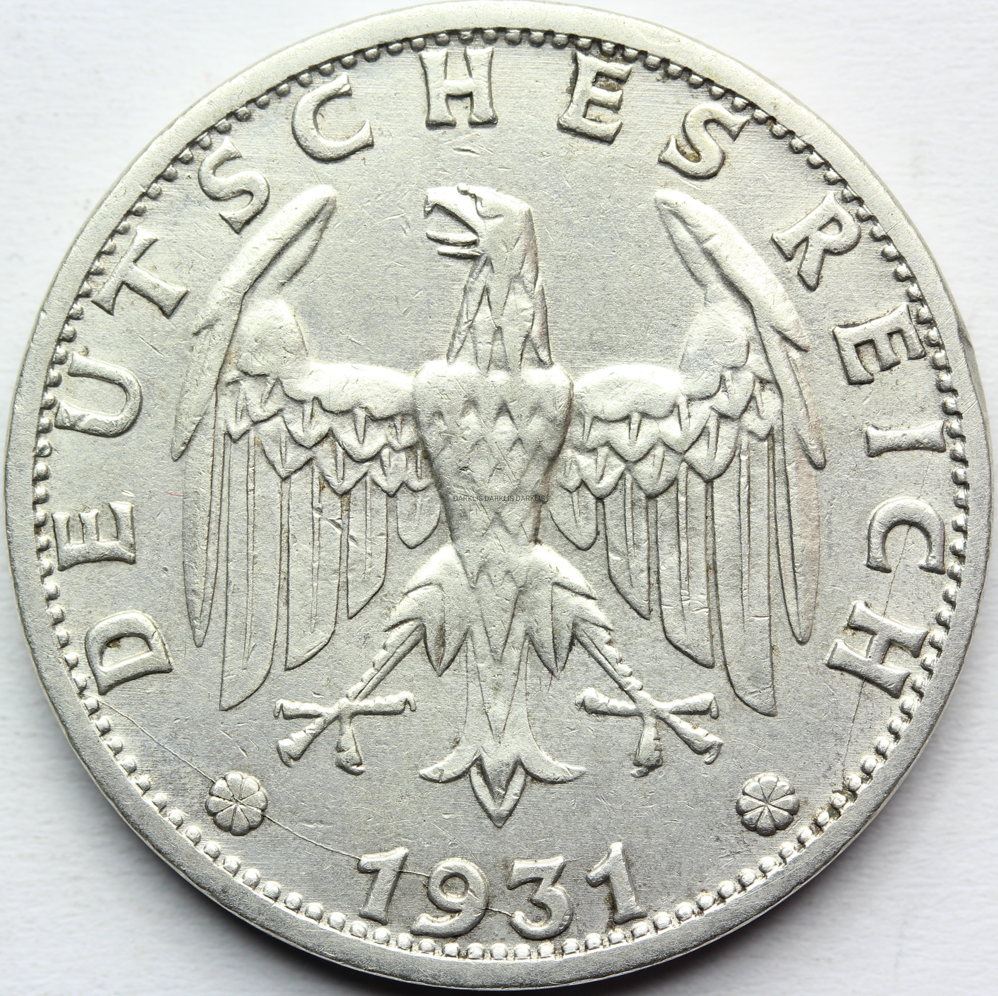 NA AUKCJI WYSTAWIANA JEST PRZEPIĘKNA ORYGINALNA STARA SREBRNA MONETA - 3 REICHSMARK - WEIMAR 1931 B - MENNICA MONACHIUM - MONETA OBIEGOWA - BARDZO RZADKA - SREBRO - SUPER STAN - RARYTAS - NA INNYCH AUKCJACH WYSTAWIAM MONETY Z TEJ SERII - ZAPRASZAM DO OGLĄDANIA - 16/30/09/25