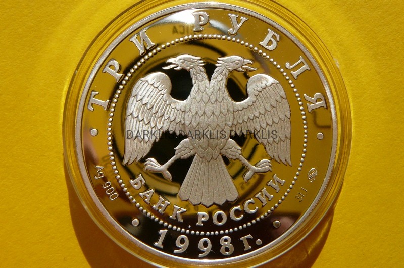 3 RUBLE ROSJA 1998 -KOŚCIÓŁ Z WIEŻĄ DZWONNICZĄ -Ag