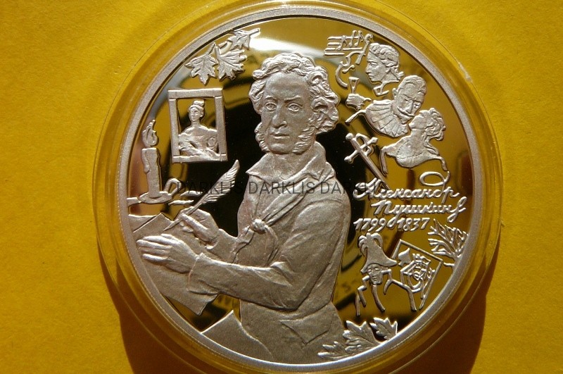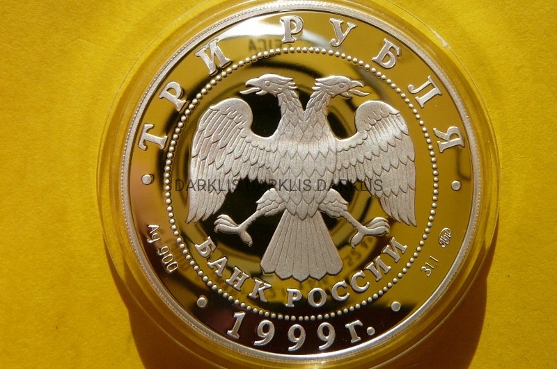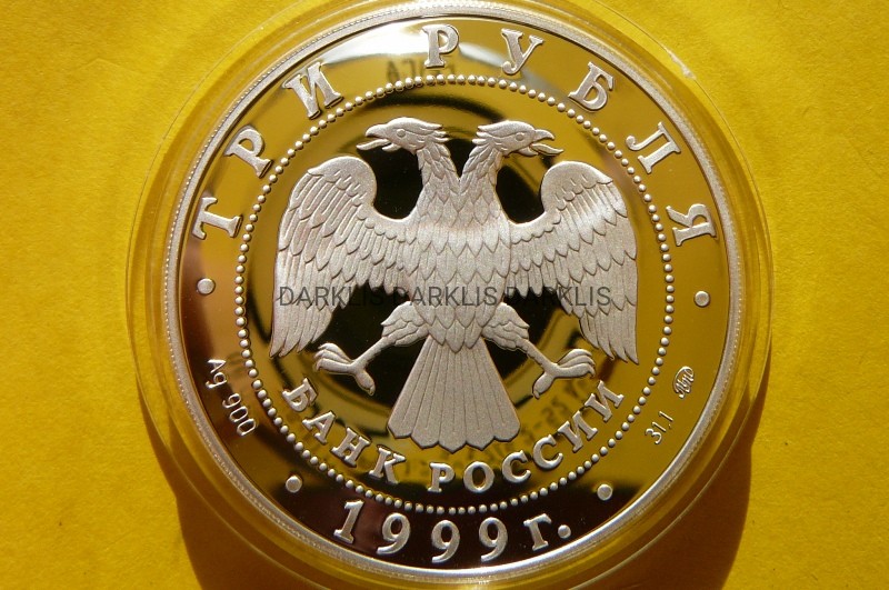 NA AUKCJI WYSTAWIANA JEST PRZEPIĘKNA ORYGINALNA SREBRNA MONETA KOLEKCJONERSKA - 3 RUBLE - ROSJA 1999 - 200 ROCZNICA URODZIN A.S.PUSZKIN SIEDZĄCY - STEMPEL LUSTRZANY - SREBRA 900 - 34,88g - NAKŁAD 15 TYS SZTUK - NA INNYCH AUKCJACH WYSTAWIAM DUŻO MONET z ROSJI i z BYŁYCH REPUBLIK RADZIECKICH - ZAPRASZAM DO OBEJRZENIA