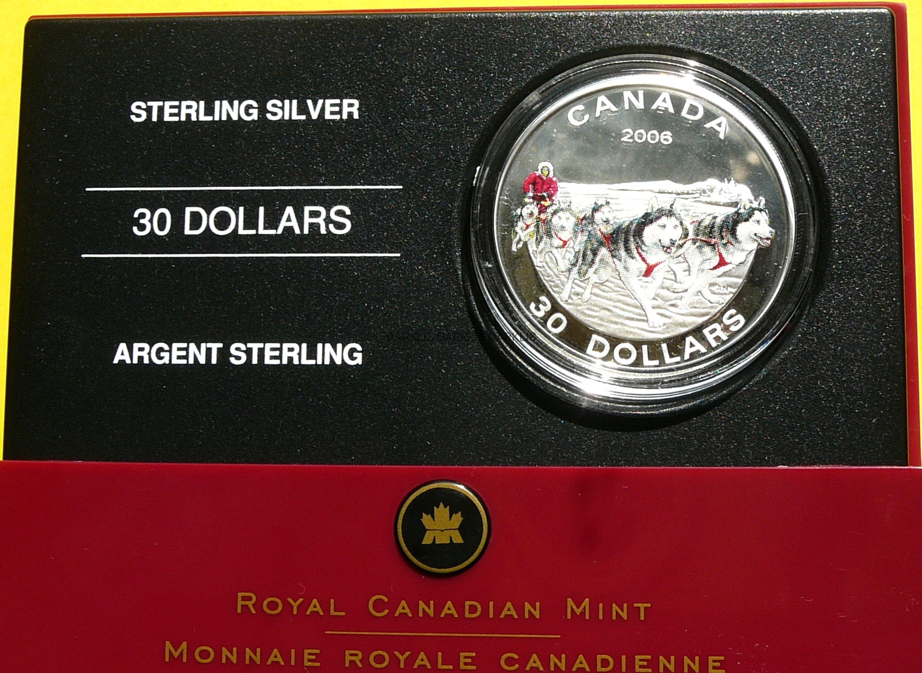 NA AUKCJI WYSTAWIANA JEST PRZEPIĘKNA ORYGINALNA SREBRNA I RZADKA MONETA KOLEKCJONERSKA - 30 DOLLARS - KANADA 2006 - DRUŻYNA ZAPRZĘG DLA PSÓW - SREBRO PRÓBY 925 - STEMPEL LUSTRZANY - UNCJA - KOLOR - MENNICZA - RARYTAS - NAKŁAD TYLKO 15.000 SZTUK !! + CERTYFIKAT AUTENTYCZNOŚCI + ETUI + KARTON - NA INNYCH AUKCJA WYSTAWIAM MONETY Z TEJ SERII - ZAPRASZAM DO OGLĄDANIA
