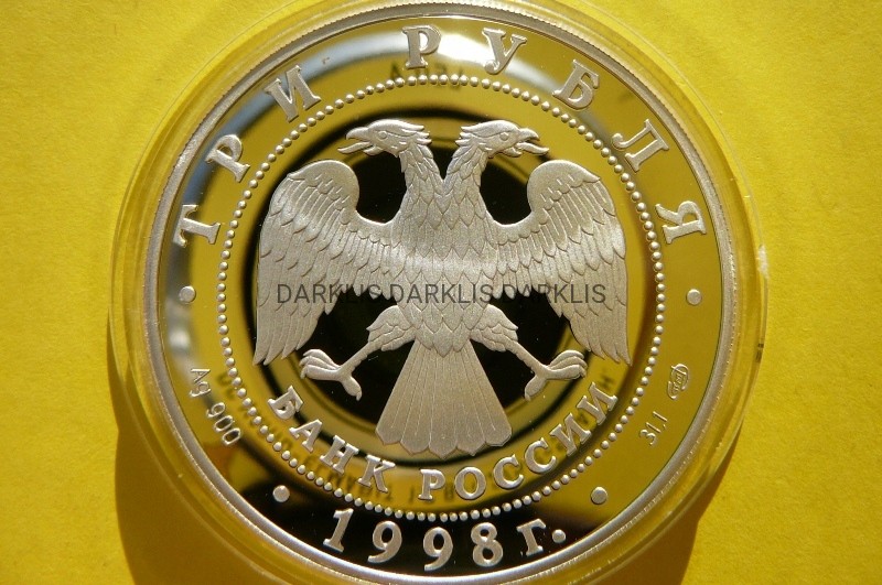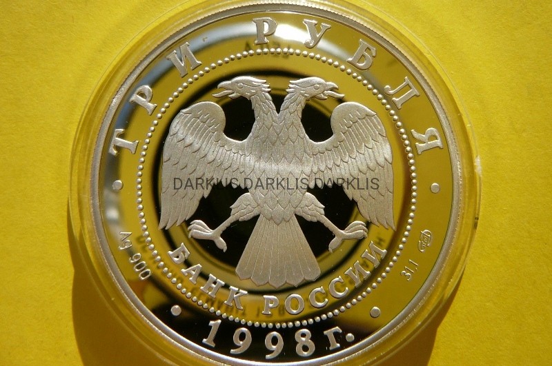 PRZEDMIOTEM AUKCJI JEST PRZEPIĘKNA SREBRNA MONETA - 3 RUBLE - ROSJA 1998 - RUSSIAN SOSAVETA - 100 ROCZNICA MUZEUM NARODOWE - STEMPEL LUSTRZANY - MENNICZA - RARYTAS MAŁY NAKŁAD TYLKO 15TYS. SZTUK - WARTOŚĆ KATALOGOWA 55 EURO - NA INNYCH AUKCJACH MONETY Z TEJ SERII