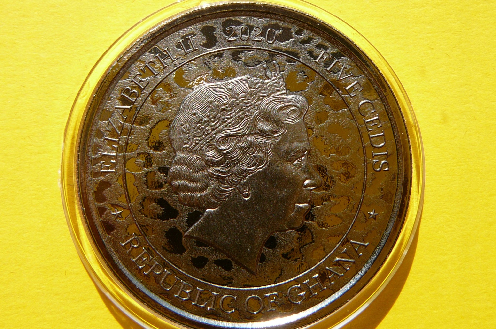 5 CEDIS GHANA 2020 LEOPARD AFRICAN Ag/Au999 RUTHEN