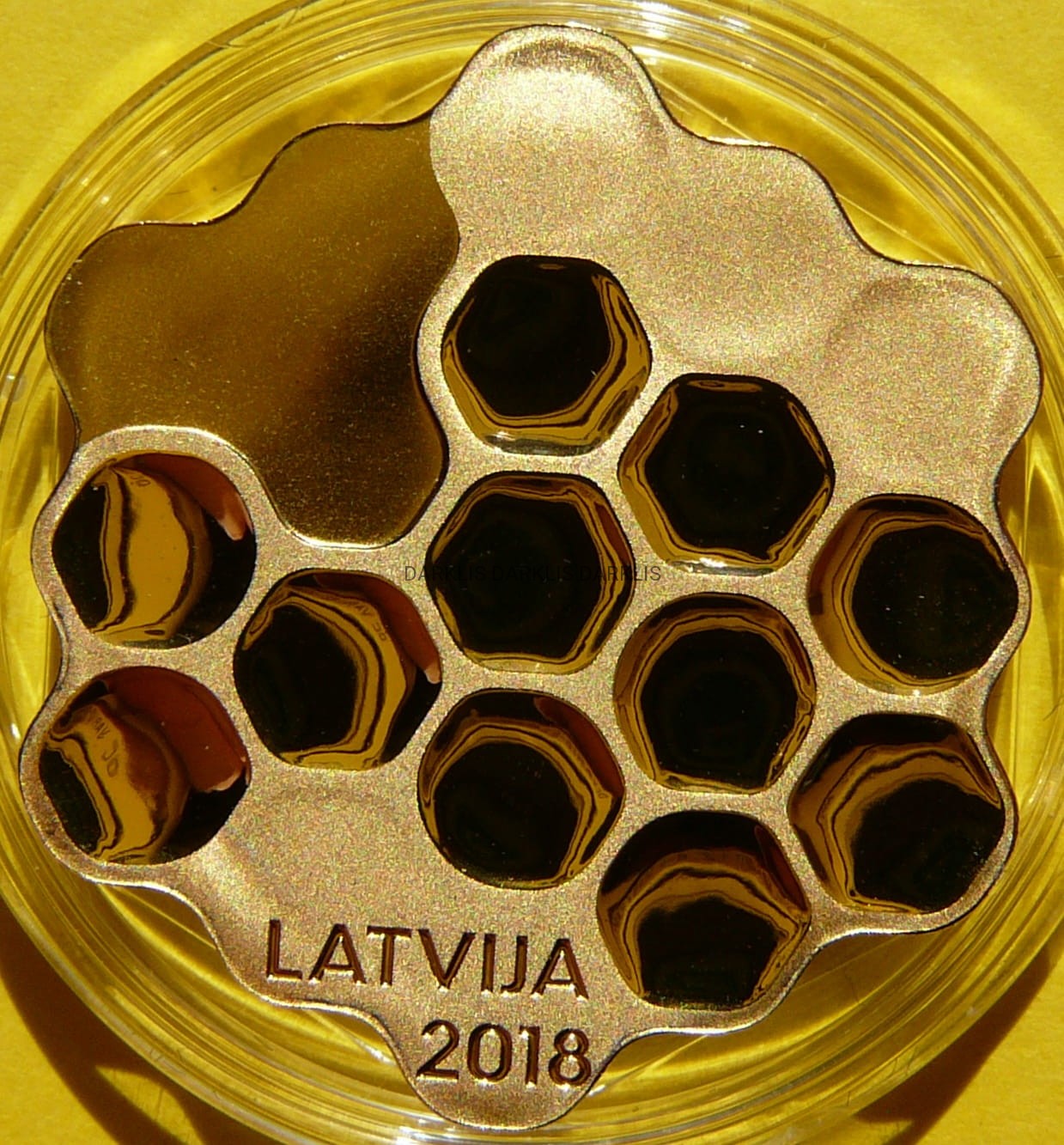 NA AUKCJI WYSTAWIANA JEST PRZEPIĘKNA ORYGINALNA SREBRNA MONETA KOLEKCJONERSKA - 5 EURO - ŁOTWA 2018 - PLASTER PSZCZELI - SREBRO PRÓBY 925 - STEMPEL LUSTRZANY - BARDZO RZADKA - RARYTAS - NAKŁAD TYLKO 3.000 SZTUK !! + CERTYFIKAT AUTENTYCZNOŚCI + ETUI - NA INNYCH AUKCJACH WYSTAWIAM MONETY Z TEJ SERII - ZAPRASZAM DO OBEJRZENIA