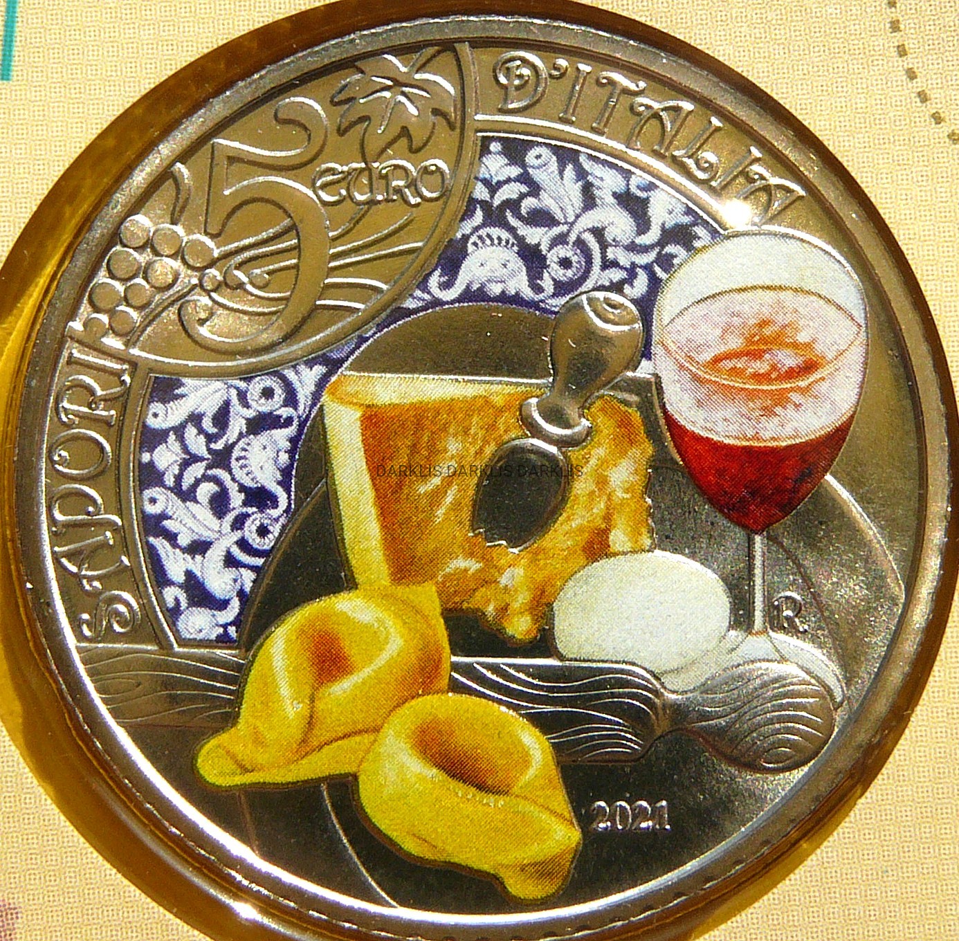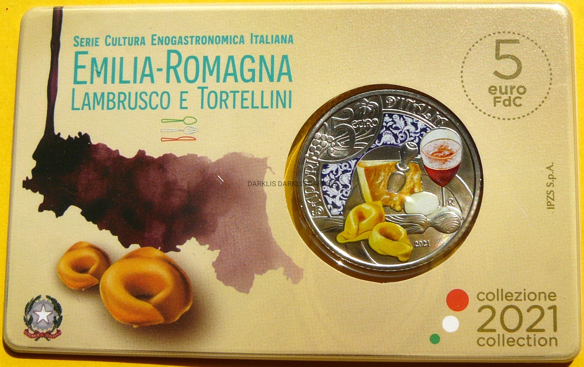 NA AUKCJI WYSTAWIANA JEST PRZEPIĘKNA ORYGINALNA RZADKA MONETA KOLEKCJONERSKA - 5 EURO - WŁOCHY 2021 - LAMBRUSCO I TORTELLINI - WŁOSKA KULTURA JEDZENIA I WINA - STEMPEL MATT - KOLOR - MENNICZA - RARYTAS - NAKŁAD TYLKO 12.000 SZTUK !! + CERTYFIKAT AUTENTYCZNOŚCI + ETUI + KARTON - NA INNYCH AUKCJACH WYSTAWIAM MONETY Z TEJ SERII - ZAPRASZAM DO OBEJRZENIA